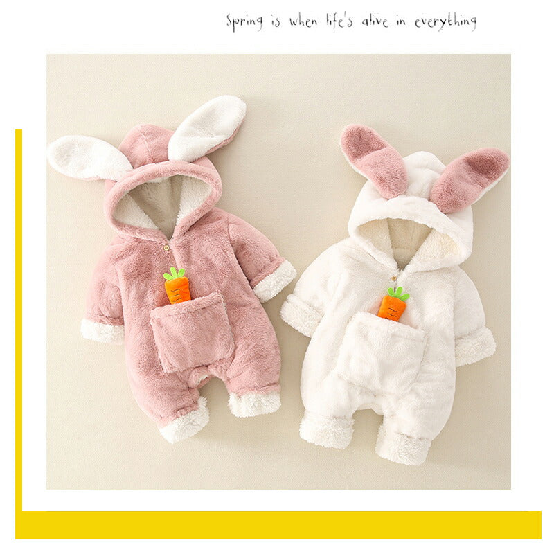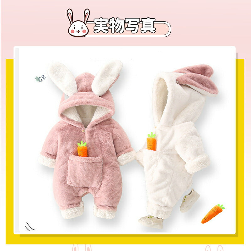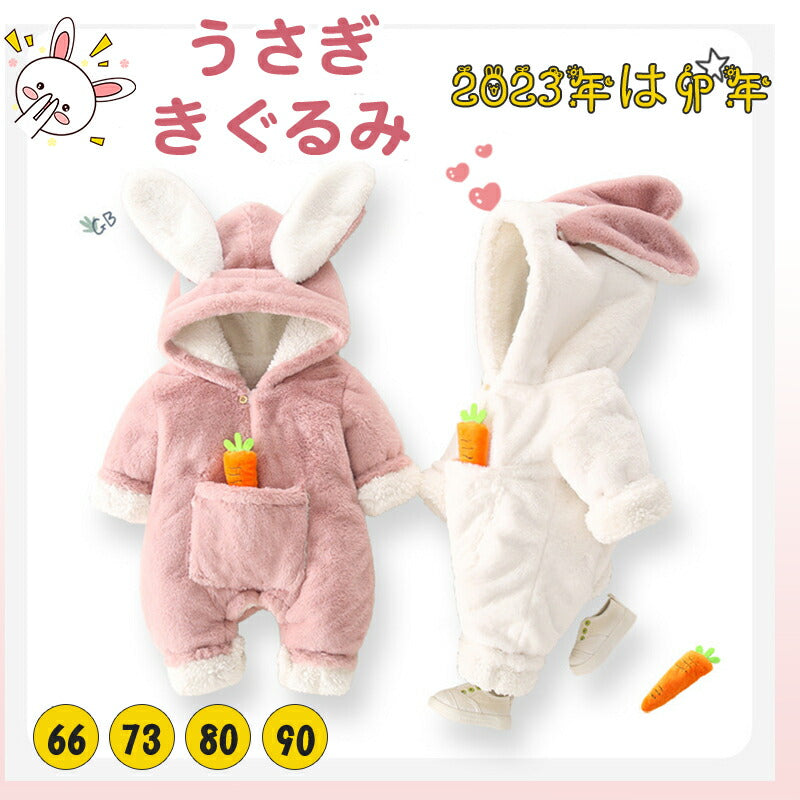 うさぎさん きぐるみ ベビー ロンパース ウサギ 着ぐるみ 秋冬 フード付き あったか 前開き カバーオール 男の子 女の子 もこもこ パジャマ ベビーウェア copysku-178