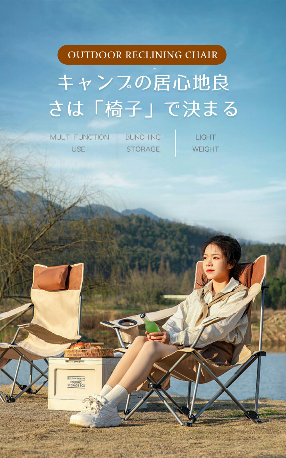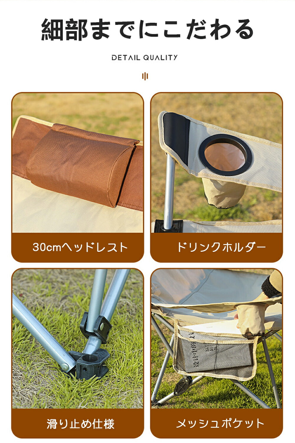 アウトドアチェア リクライニングチェア フットレスト 折りたたみ 軽量 ハイバック キャンプ アウトドア リクライニング チェア ドリンクホルダー 屋外 レジャ foldchair-003