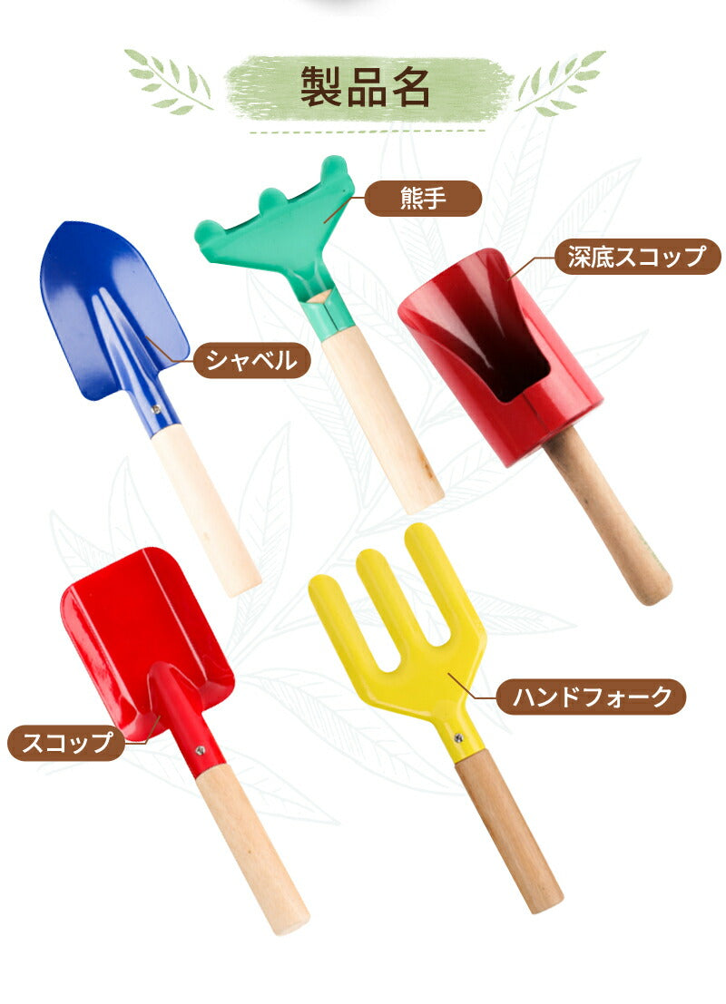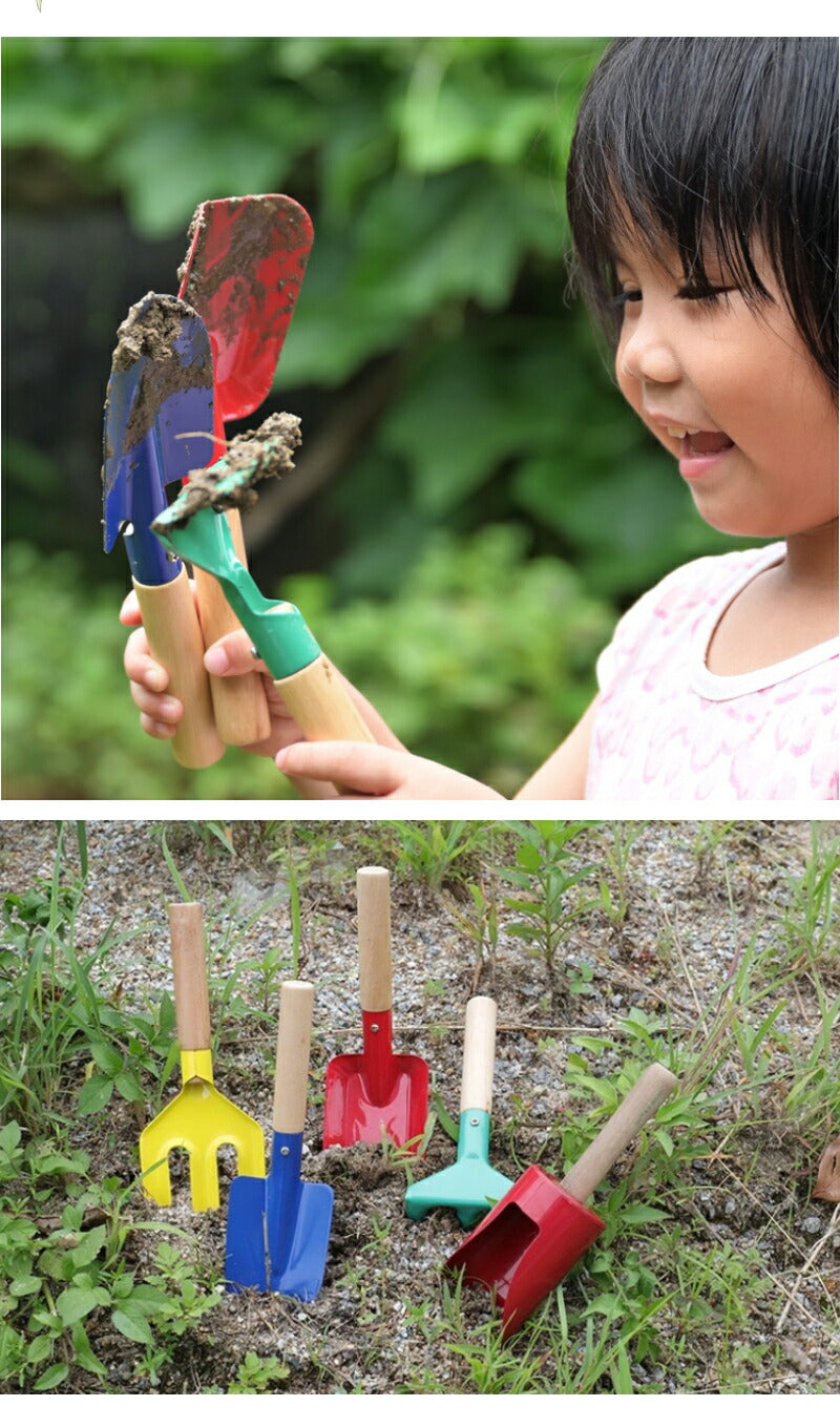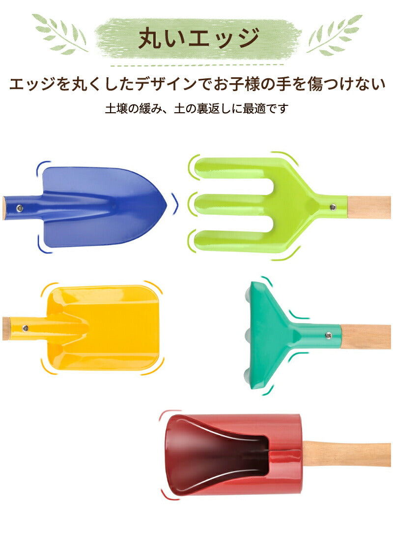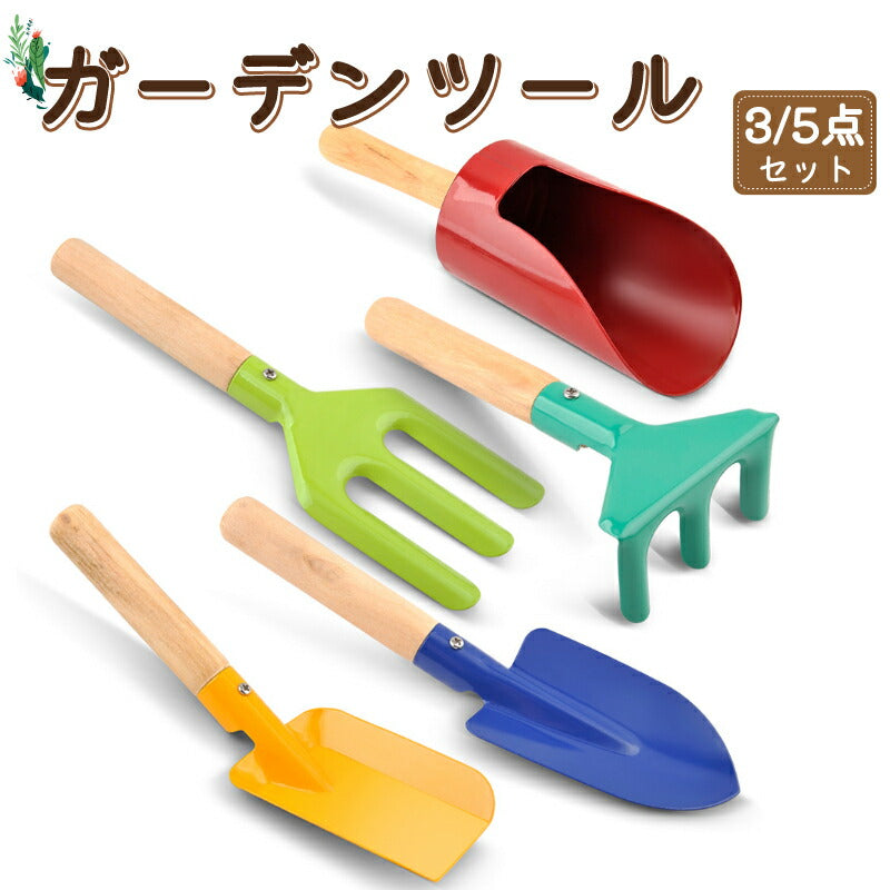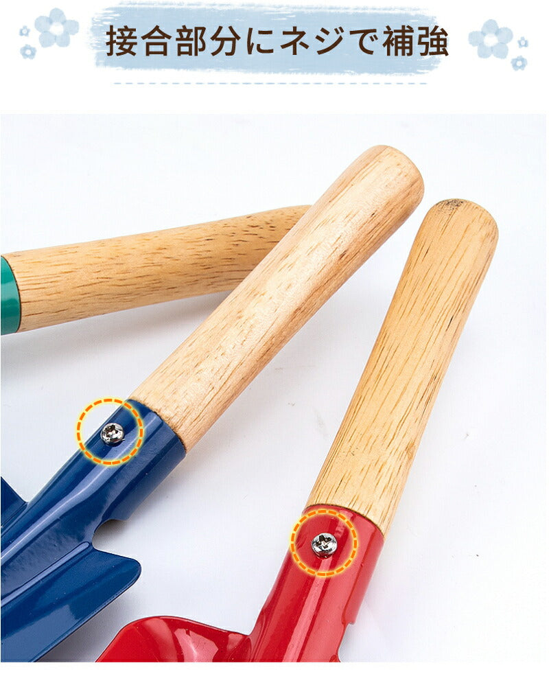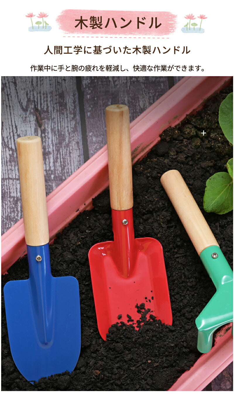 ガーデニングツール 子供用 3本組・5本組 園芸 キッズスコップ 移植ごて セット ガーデンフォーク 熊手 深底スコップ ソイルスコップ 表面カラーペイントカgarden-tool-05