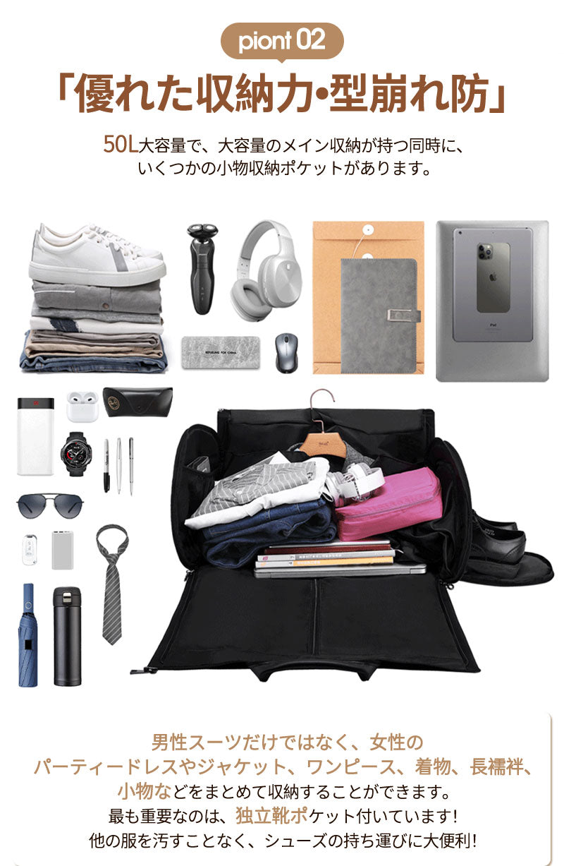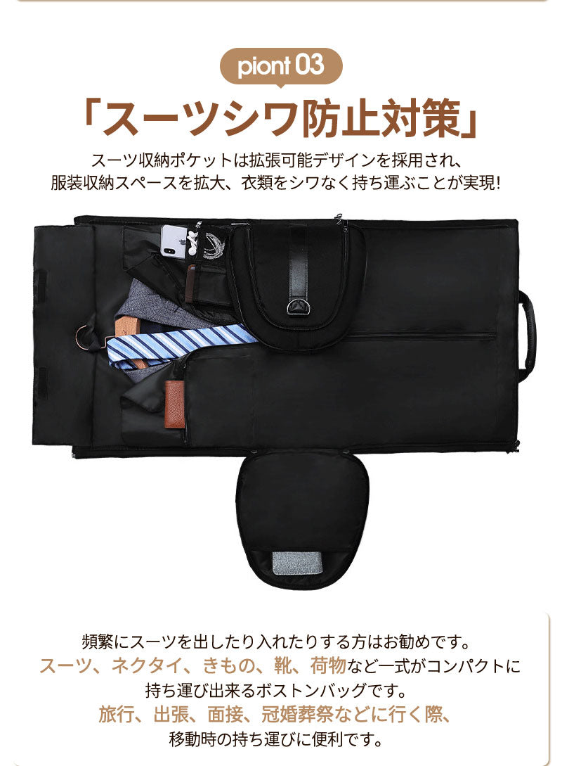 ガーメントバッグ スーツカバー 靴収納 防水 防塵 型くずれ防止 シワ防止 ビジネス 持ち運び ショルダー 出張 旅行 スーツ収納 大容量 旅行 ビジネス ジムgarment-bag-02