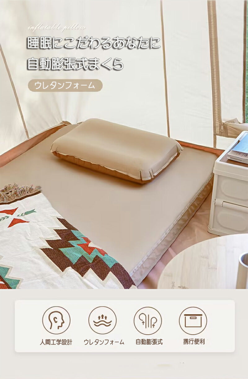 キャンプ用まくら 自動膨張式 連結 インフレータブル インフレータブルピロー キャンプ 枕 空気枕 エアー枕 ピロー 携帯用 携帯枕 旅行用 キャンプ用品 災害 campmakura-001