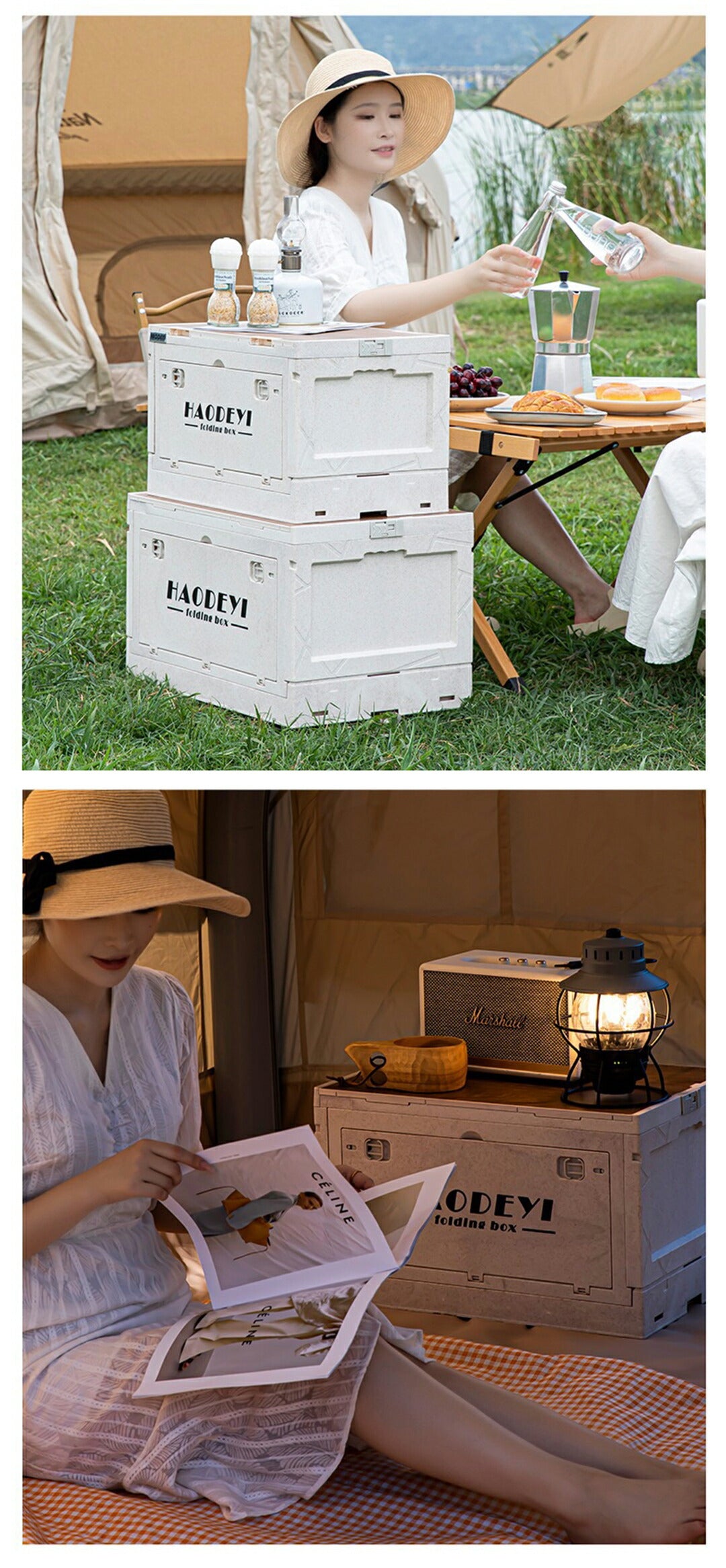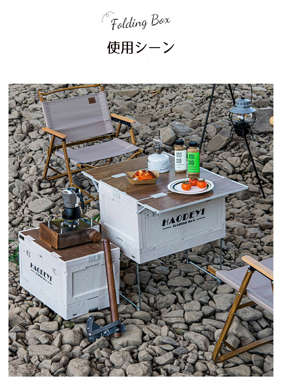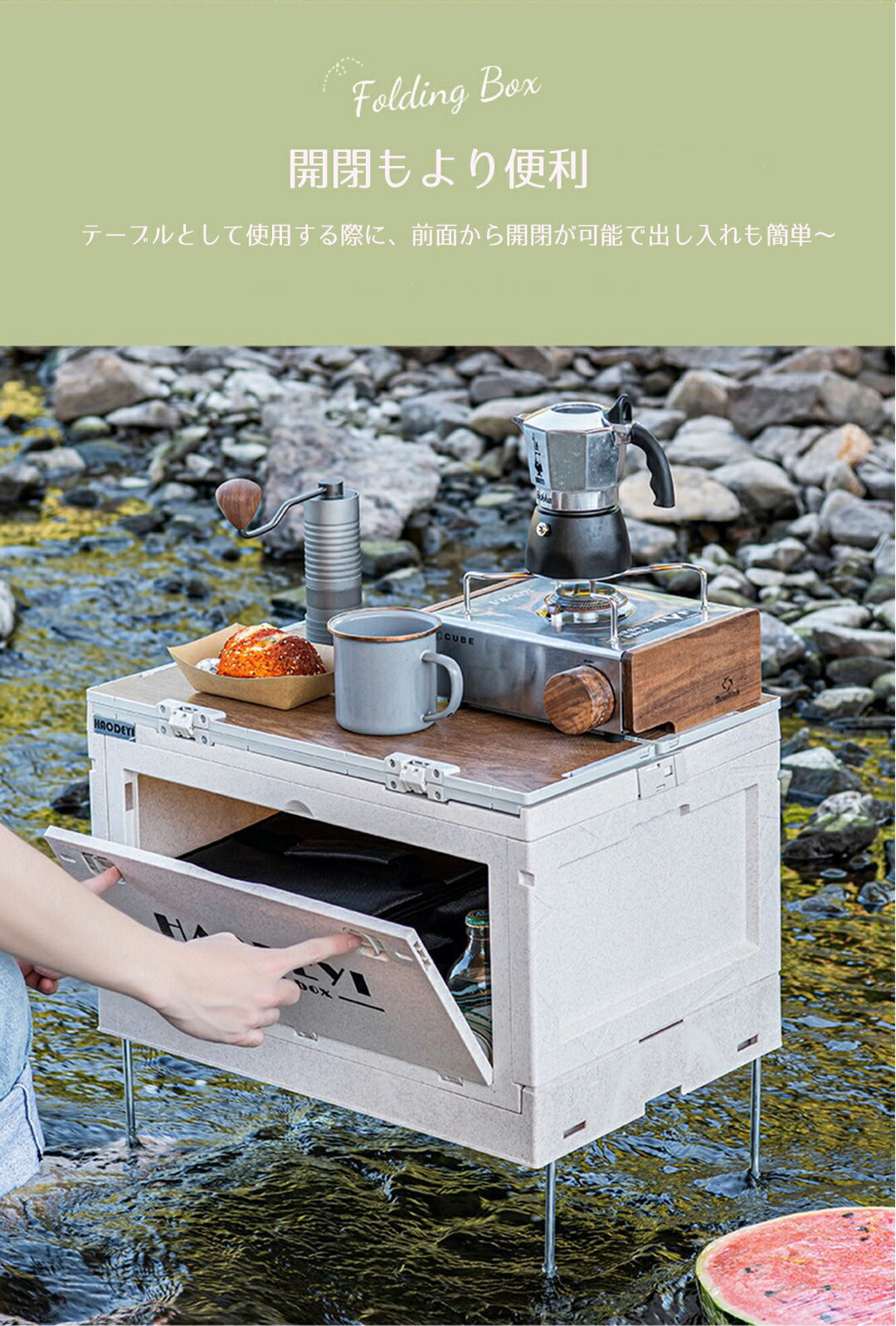 キャンプ コンテナ 収納ボックス 50L 高さ調節 キャスター付き 天板付き キャンプ テーブル アウトドアテーブル 折りたたみ テーブル キャンプ収納 コンパ foldbox-001