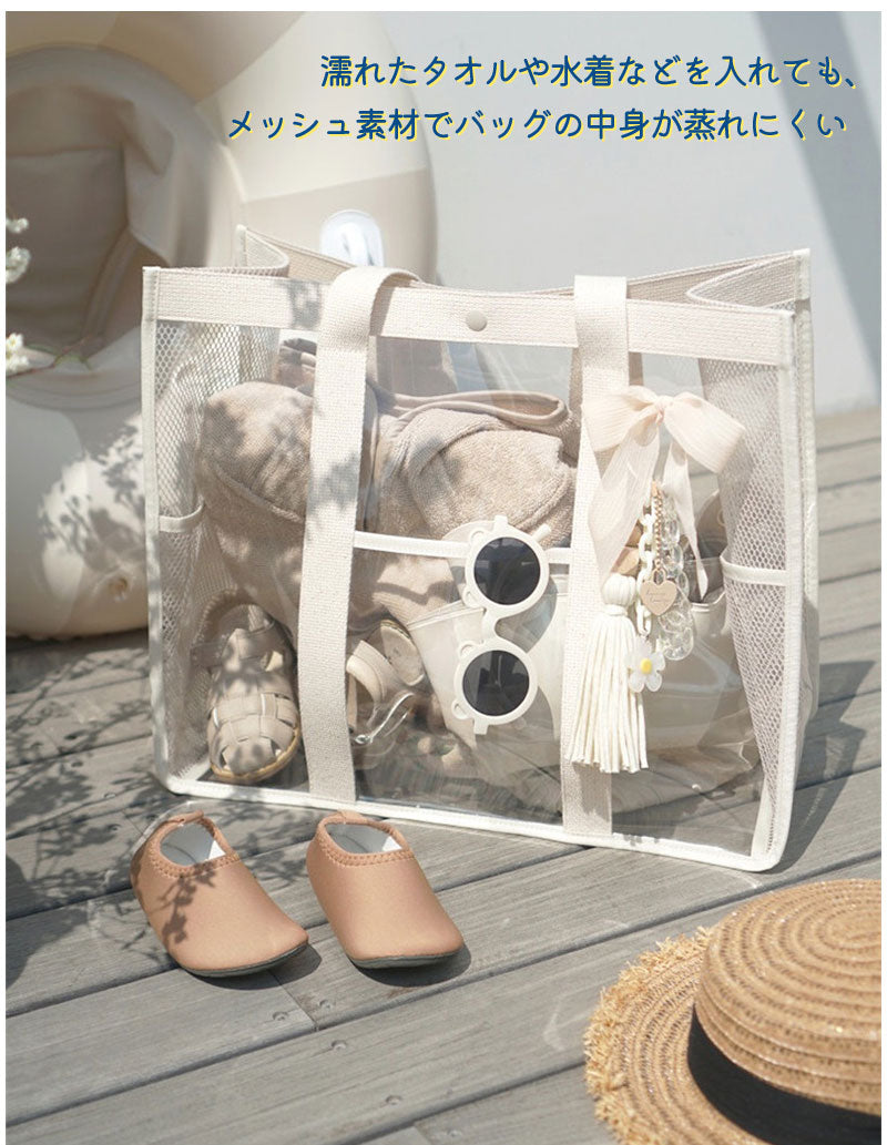 クリアトラベルバッグ ビニールバッグ トラベルかばん 痛バ 防水 透明 レディース ショルダー クリア トートバッグ スナップボタン付き 大容量 トコスメ/化粧handbag-004