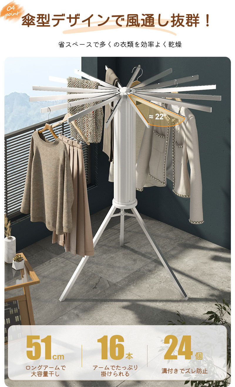【クーポン利用で6,380円★20日終了!】物干しスタンド 折りたたみ コンパクト パラソル型 おしゃれ 室内 ベランダ 物干しラック ハンガー 洗濯物 ステンhanger-ab-01