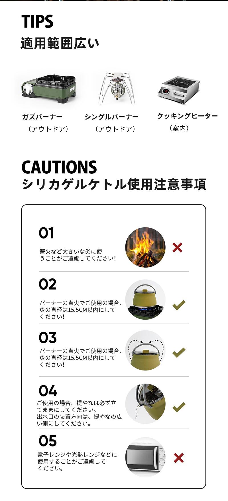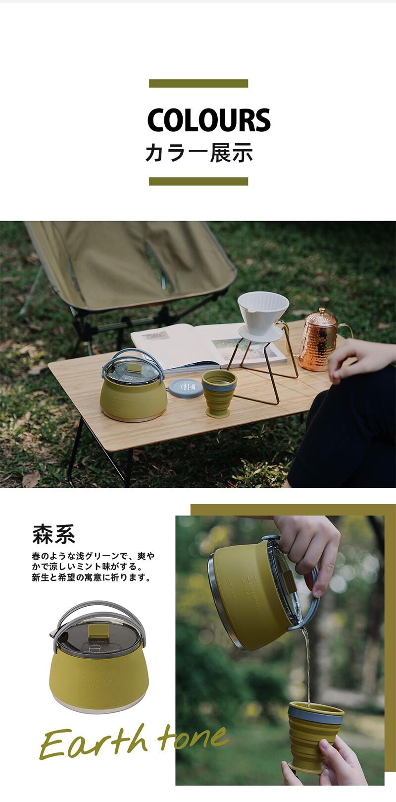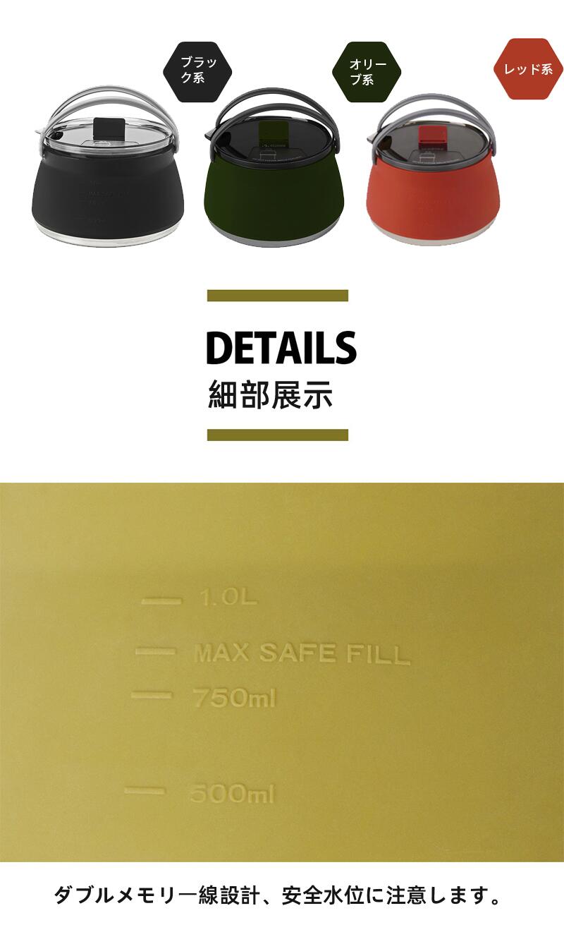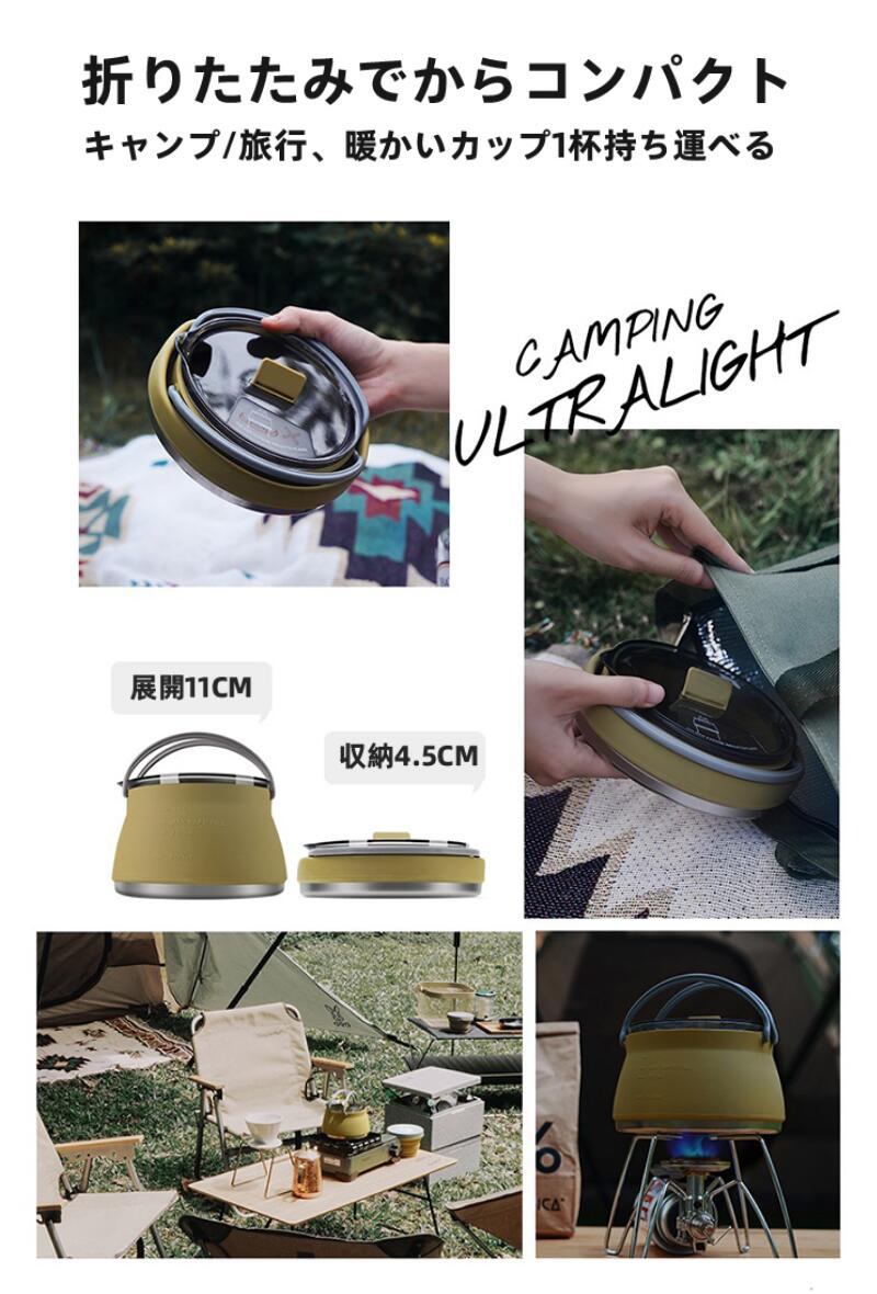 ケトル やかん アウトドア キャンプ IH 対応 直火 可能 キャンピング シリコンケトル 軽量ケトル 折りたたみ 折り畳み 鍋 ソロ 登山 用品 コンパクト ss10
