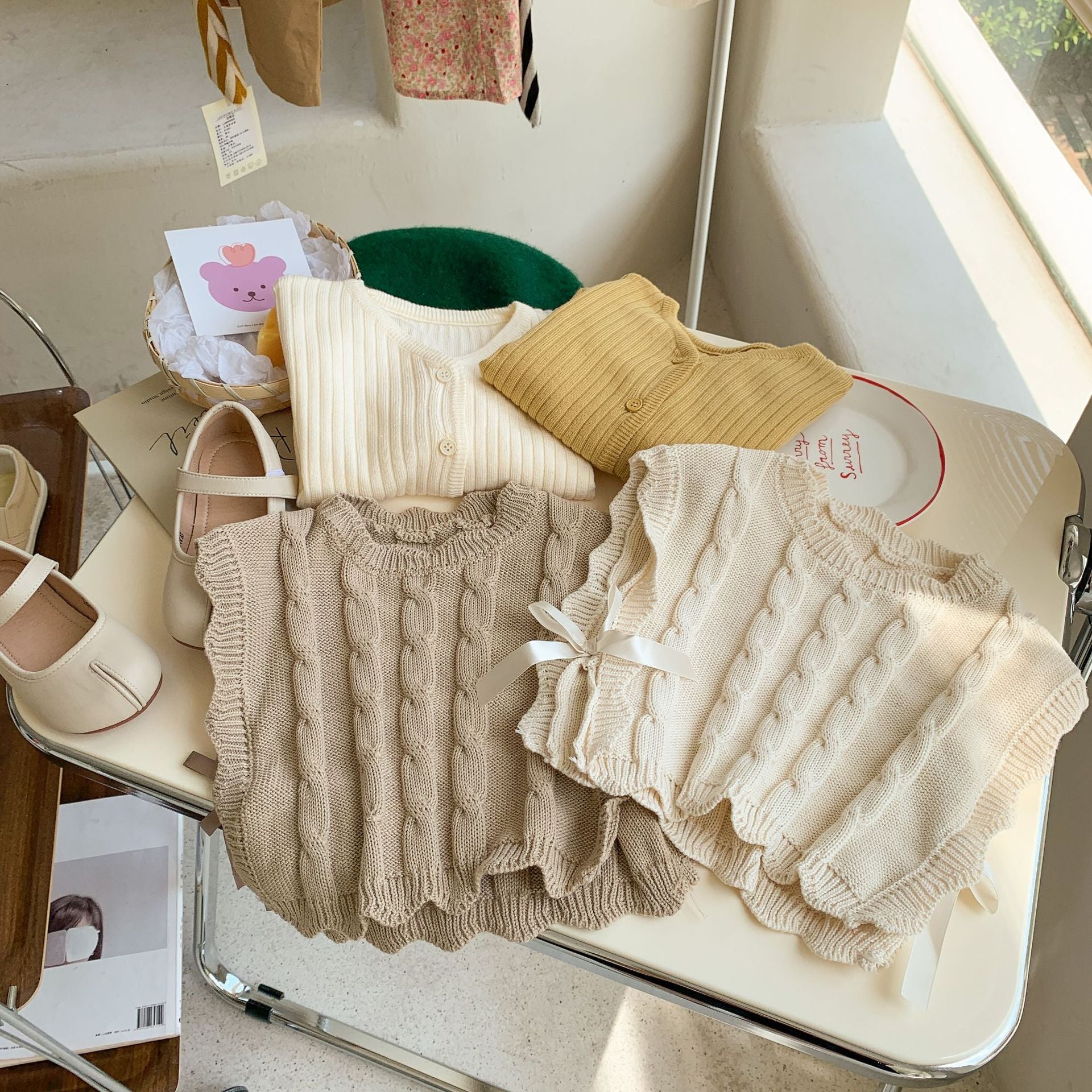 ニットベストキッズ ベビー おしゃれ アウトウェア ベスト ノースリーブ 女の子 無地 袖なし 子ども チョッキ 春 秋 冬 韓国 かわいい 子供服 80 copysku-197