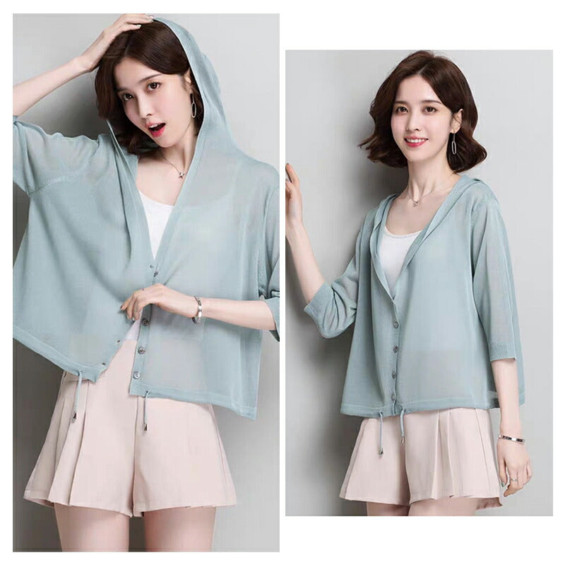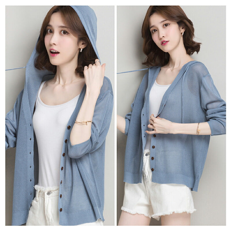 パーカー レディース 薄手 夏 パーカー レディース おしゃれ ロング丈 UVカット 紫外線対策 冷房対策 前開き ボタン ストライプ 春 夏 大き uvpaka-012