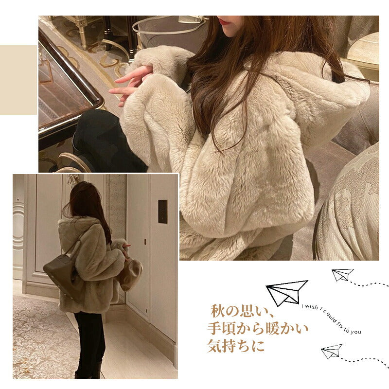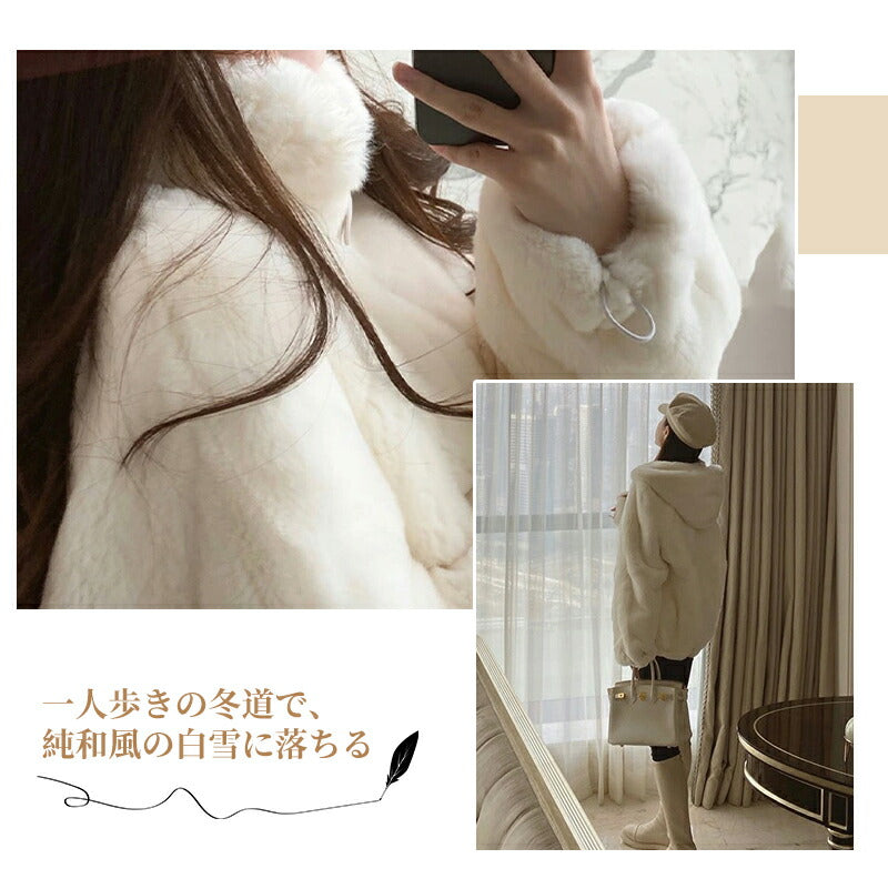 ファーコート エコファー モコモココート コート ふわふわ ボアパーカー冬アウター スリム ジャケット 暖かい モコモコ ファー コート レディース 防寒 copy-6