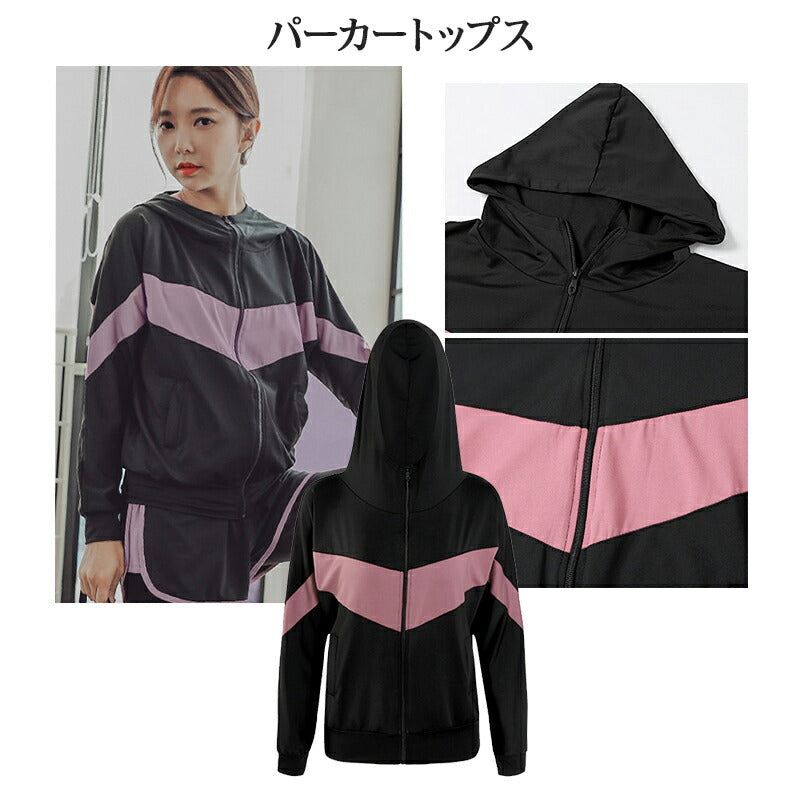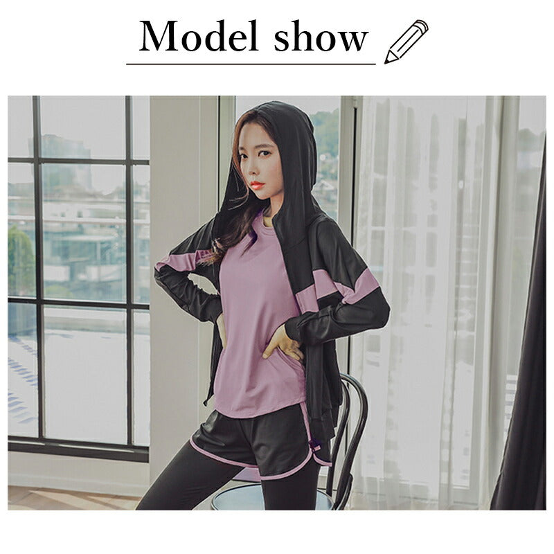 フィットネスウェア レディース ジムウェア 体型カバー 5点セット 大きいサイズ ママ水着 ぽっちゃり ラッシュガード 体型カバー水着 水陸両用 40代/30代 swimsuit-032-hd