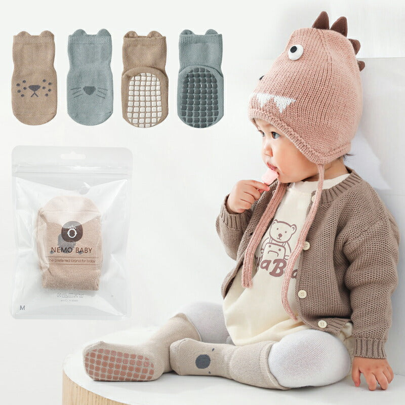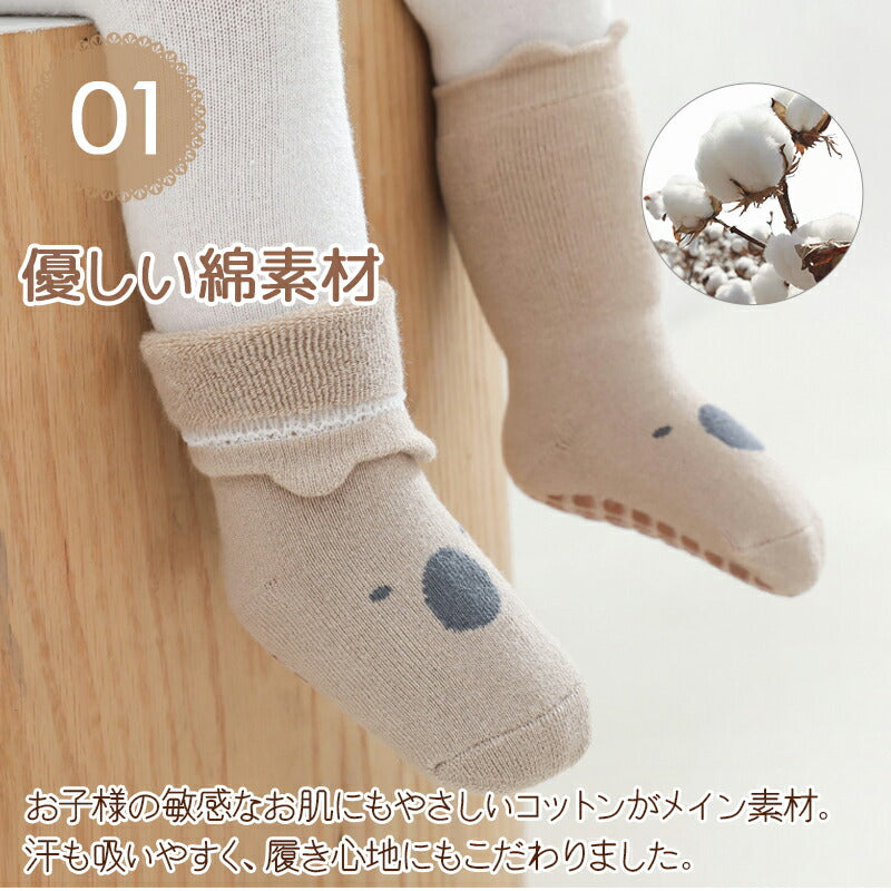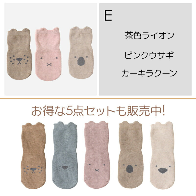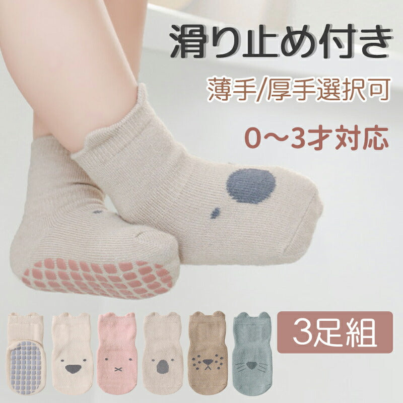 ベビー 靴下 3枚セット 滑り止め付き 3足セット ベビーソックス 可愛いアニマル柄 かわいい 赤ちゃん靴下 おしゃれ 保育園 厚手 薄手 歩く練習靴下 男児 kutusita-003
