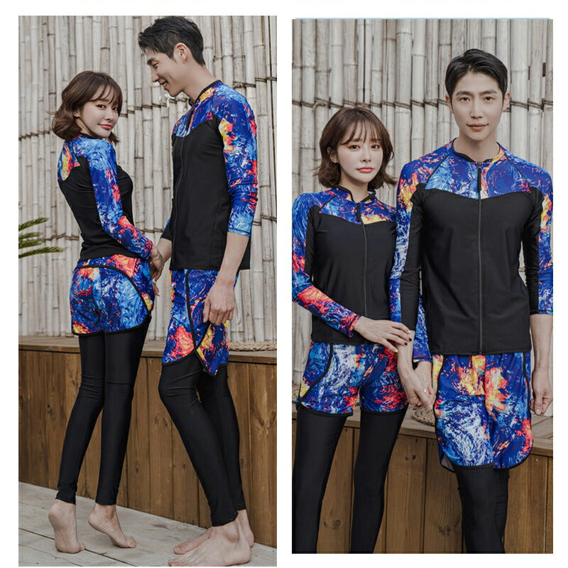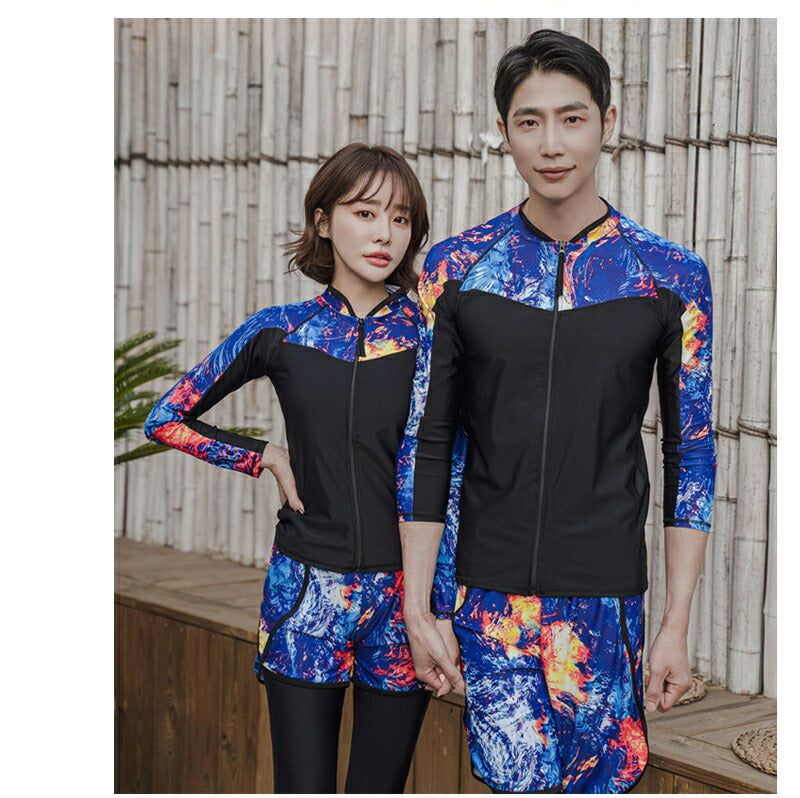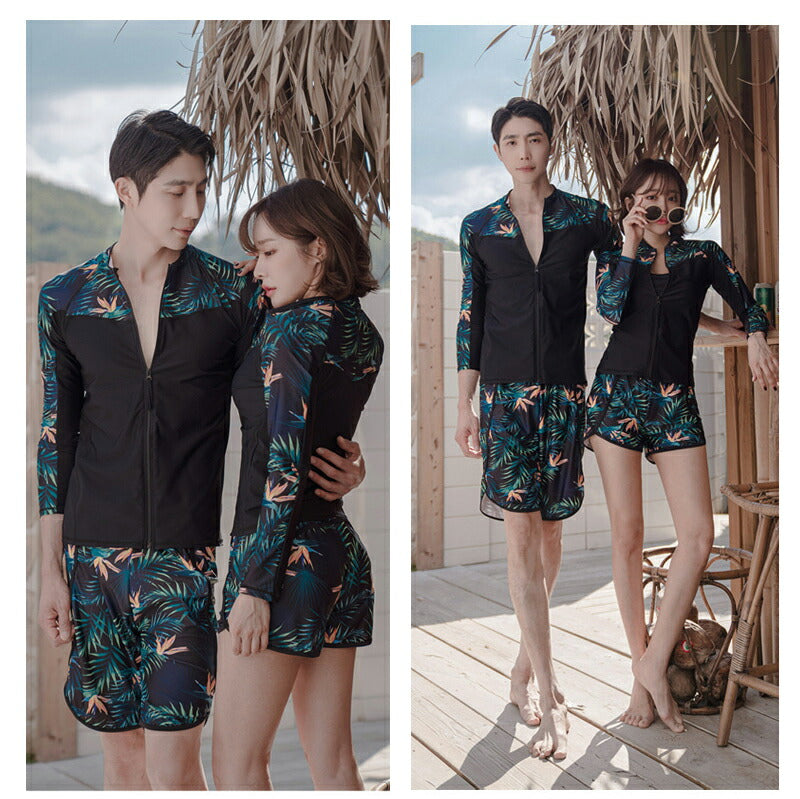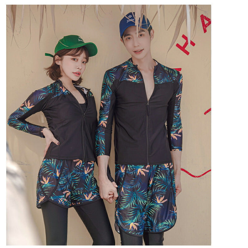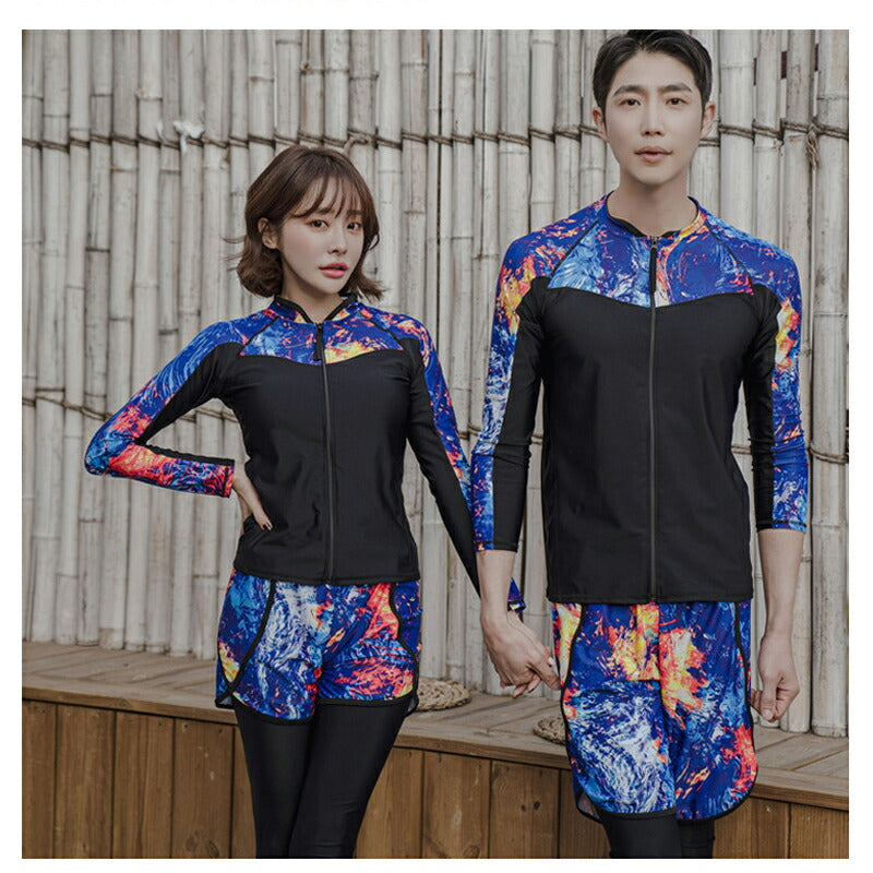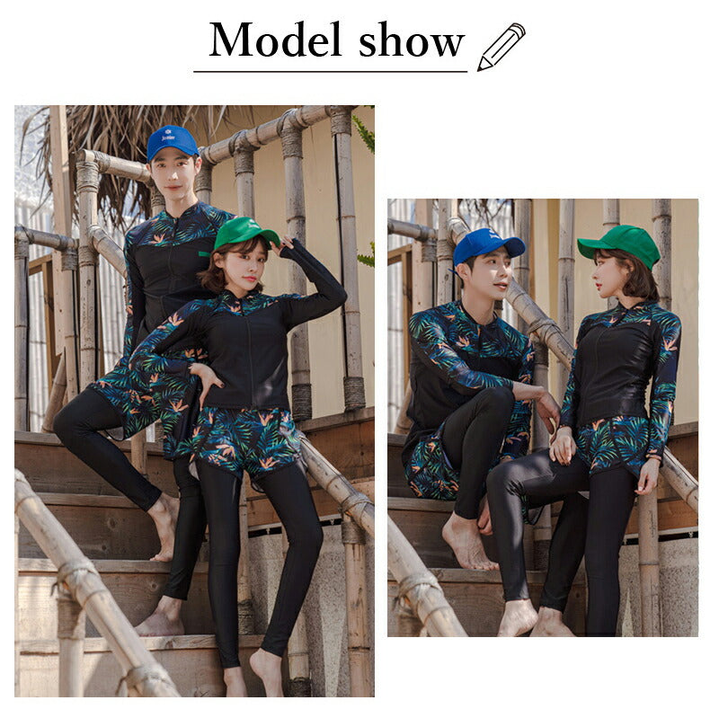 ペアルック メンズ トランクス 水着 レディース カップルお揃い ビーチ水着/S/M/L ビーチパンツ ラッシュガード付き ブラック トレーニング フィットネス swimsuit-053