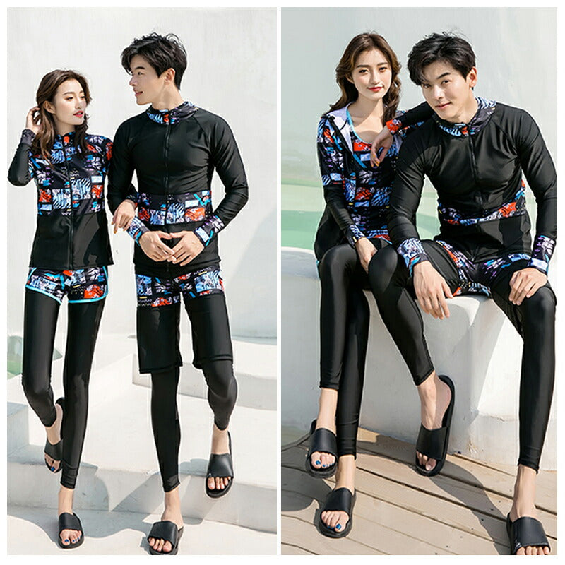 ペア水着 親子水着 ラッシュガード カップル 長袖 ペアルック 水着 レディース 上下セット メンズ ウェットスーツ セットアップ 競泳 人気 大きいサイズ お swimsuit-051