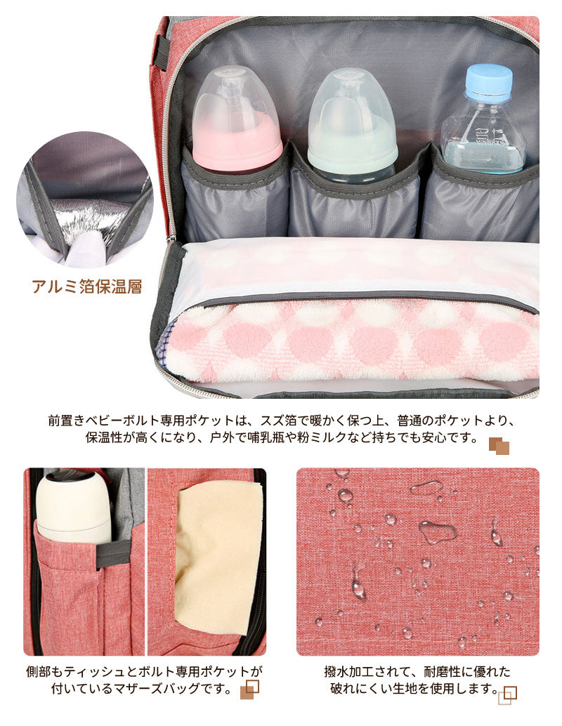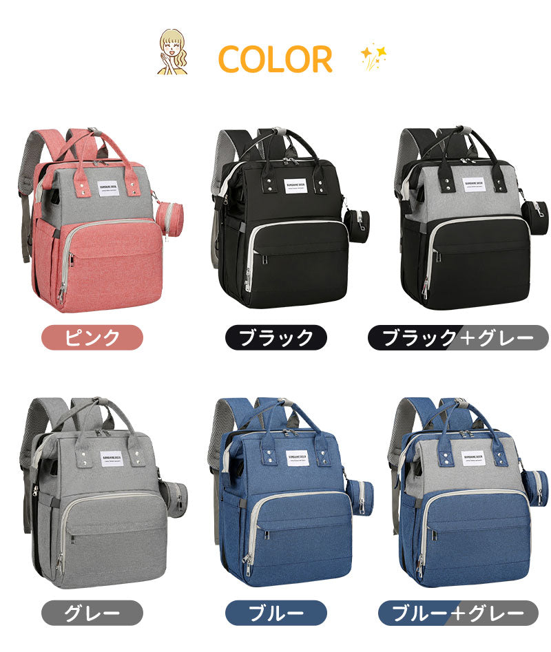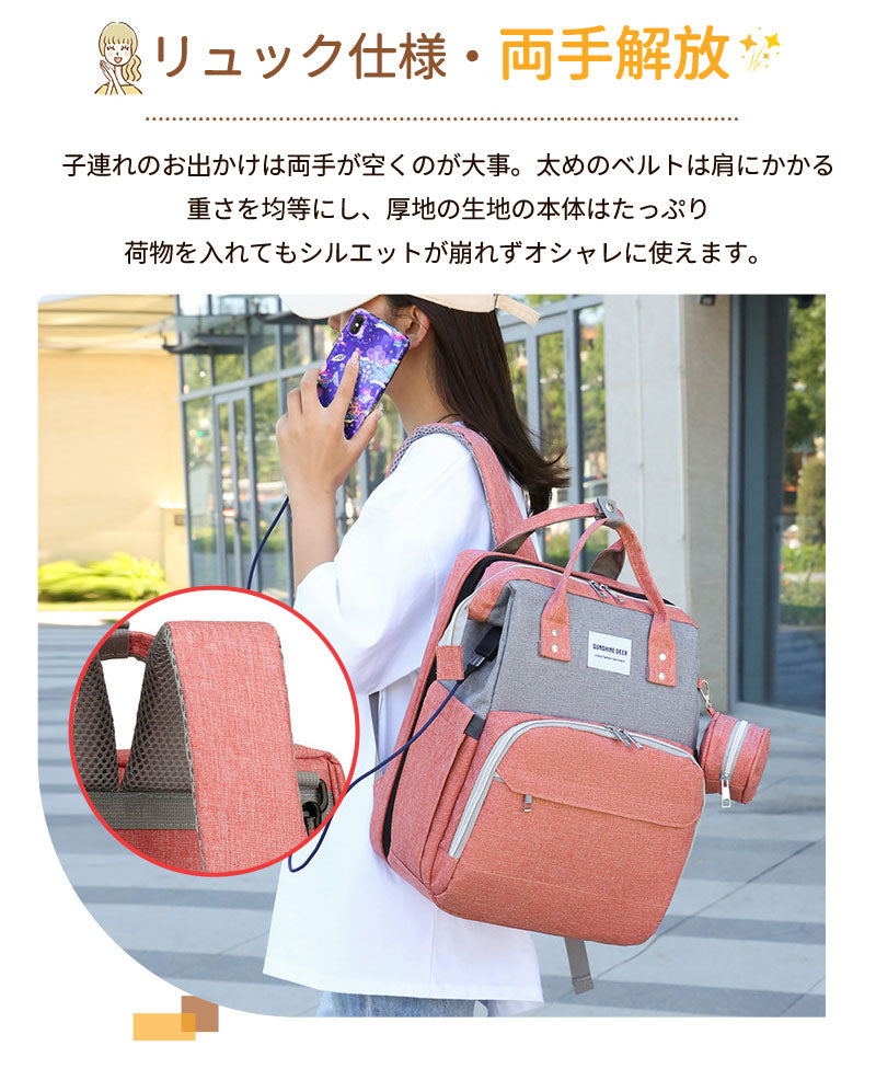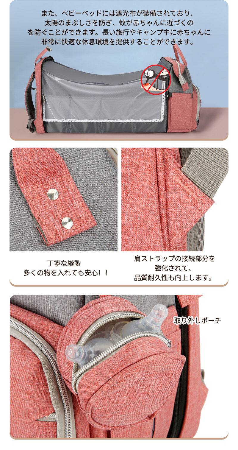 マザーズバッグ リュック ママバッグ ベビーベッド マザーズリュック 軽量 大容量 ポータブルベビーベッド おむつ交換 蚊帳付き USBポート ポーチ付きmummy-bag-03