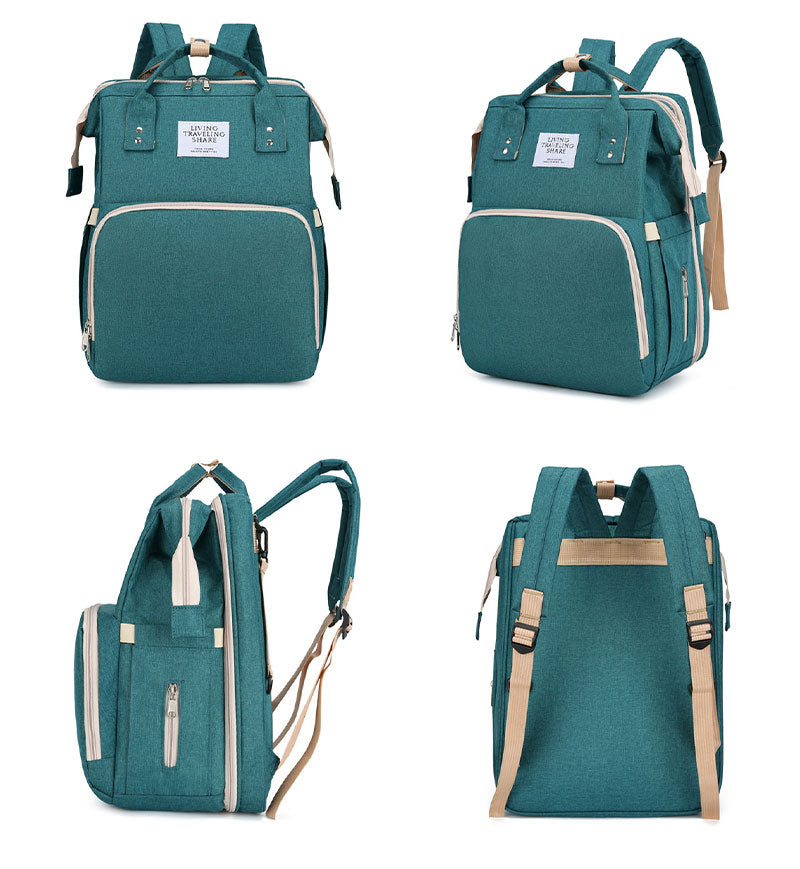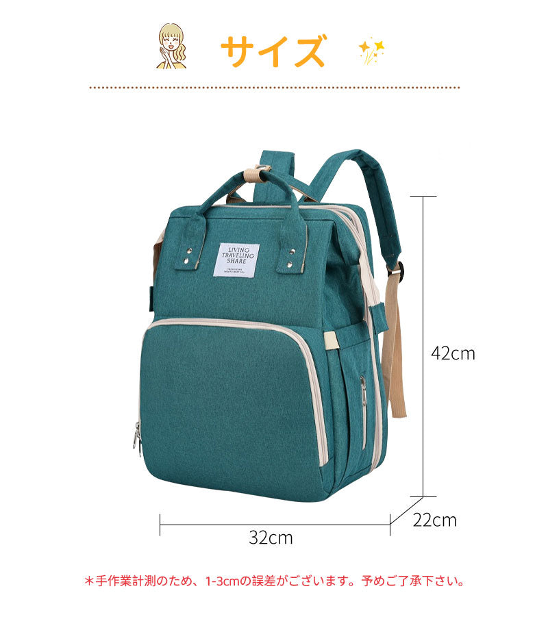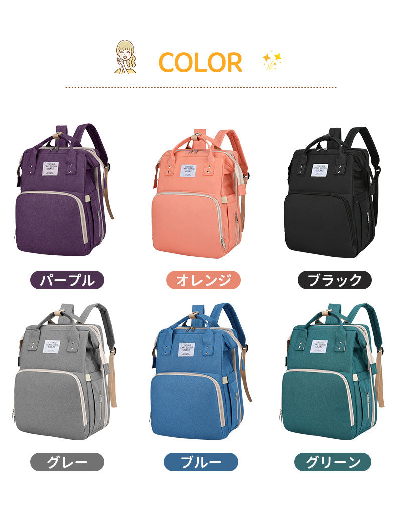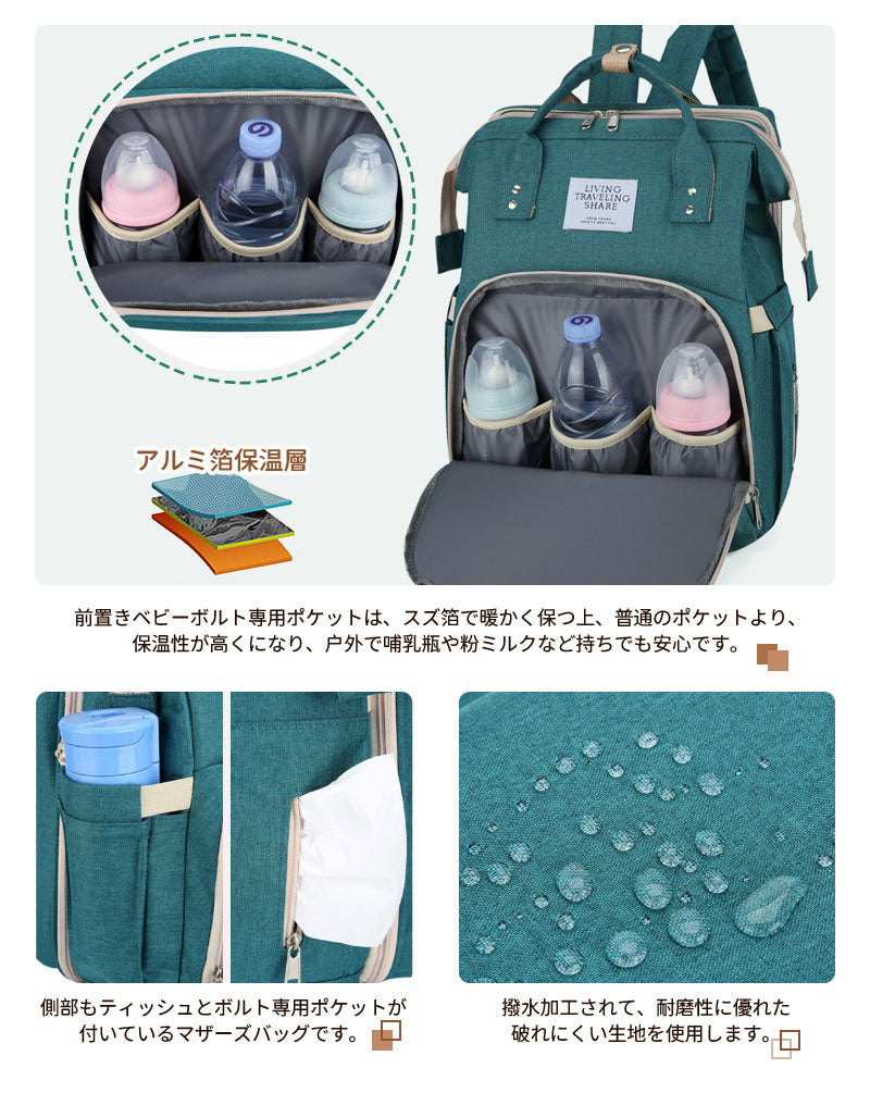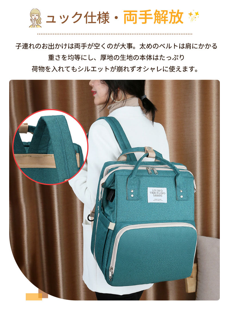 マザーズバッグ リュック ママバッグ ベビーベッド マザーズリュック 軽量 大容量 ポータブルベビーベッド おむつ交換 遮光カーテン付き USBポート mummy-bag-05