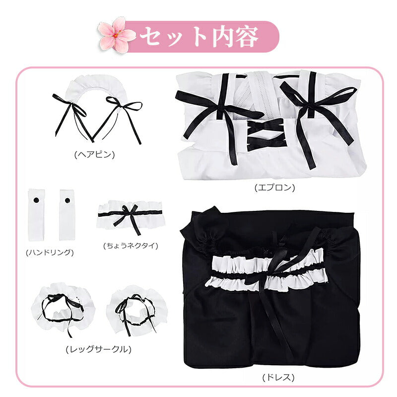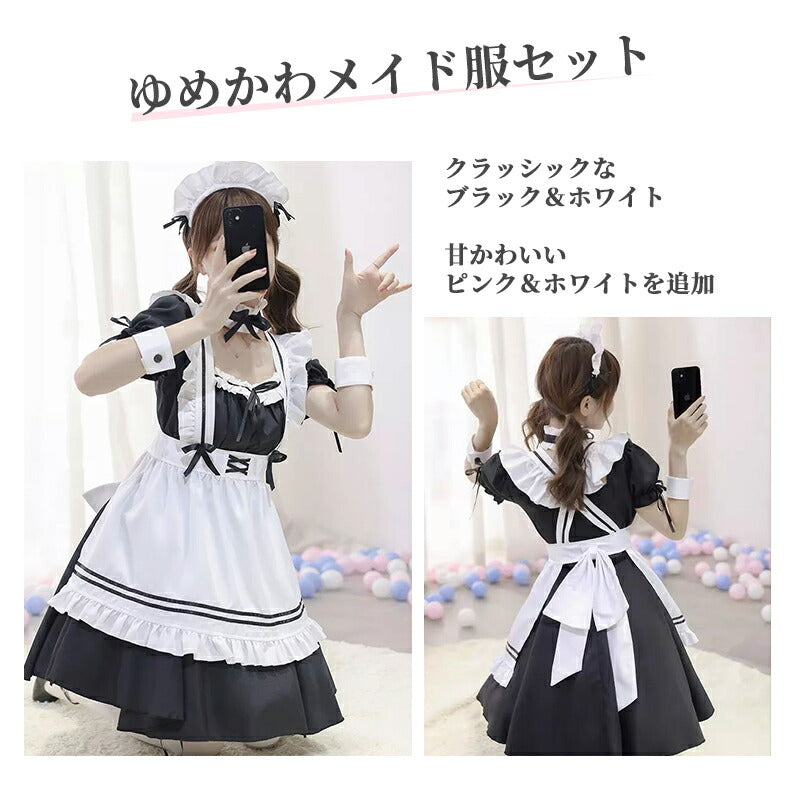 メイド服 コスプレ可愛い セクシー 制服 ハロウィン ゆめかわ 大人 レディース 6点セット エプロン カチューシャ 半袖 ゴスロリ シンプル スカート ロリ maid-001