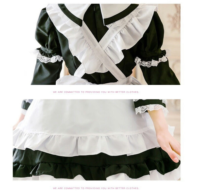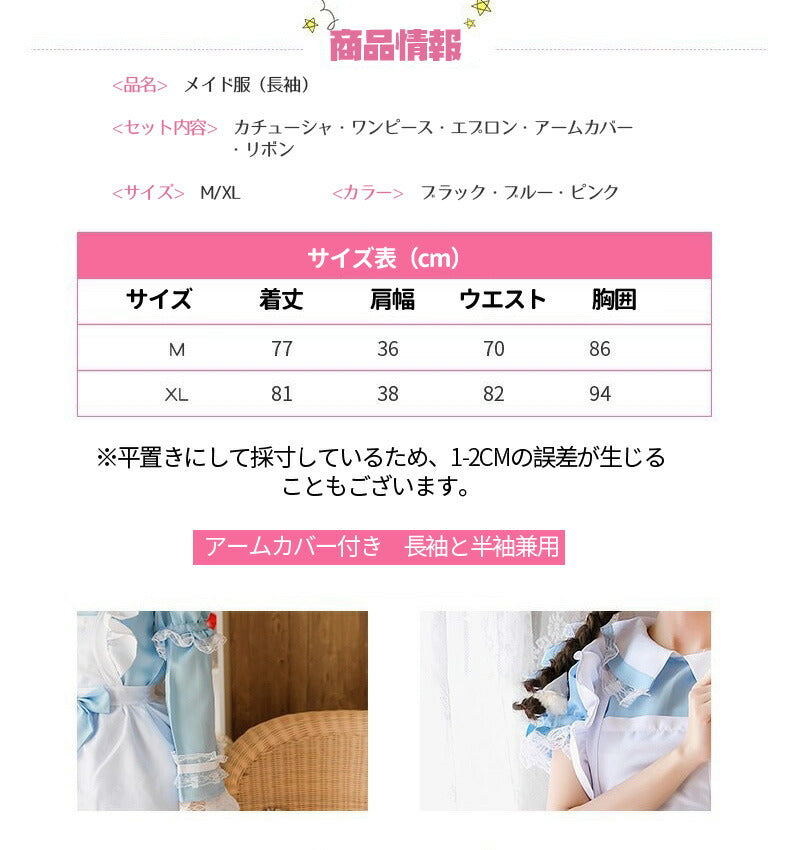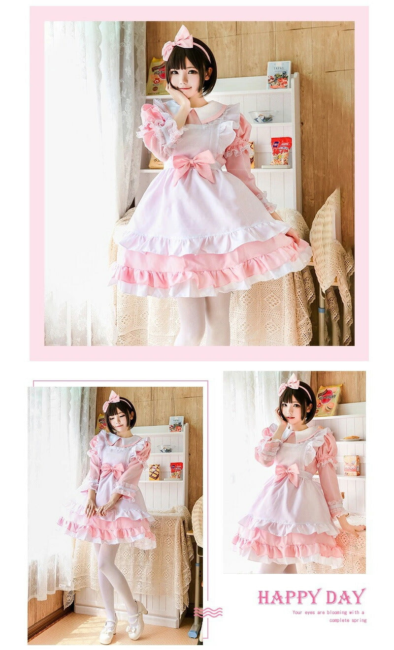メイド服 コスプレ長袖 可愛い フリル セクシー ハロウィン ロリータ 大人 レディース エプロン カチューシャ スカート ワンピース ピンク 文化祭 リボン maid-003