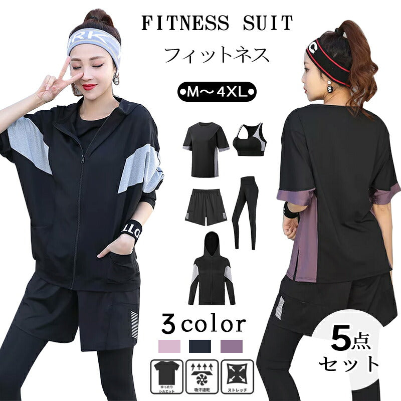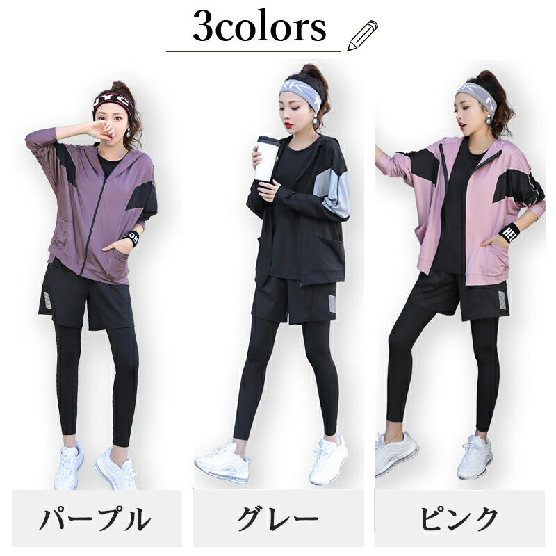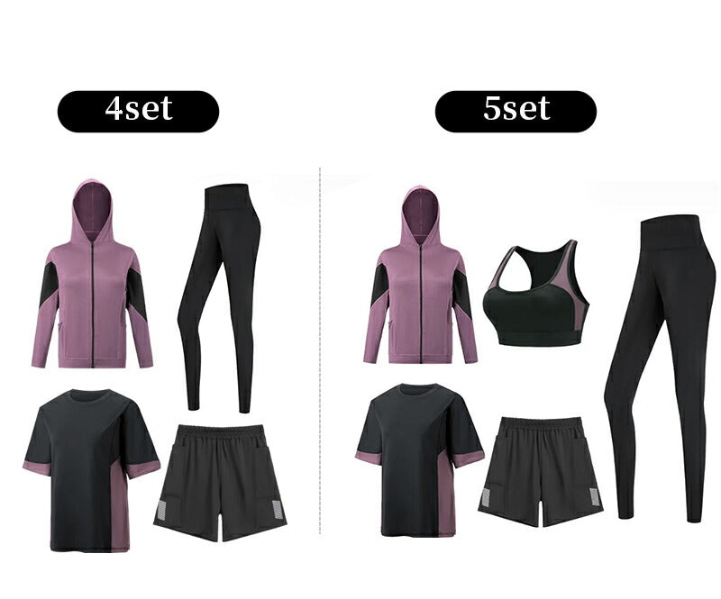 ランニングウェア レディース 5点セット トレーニングウェア 上下 スポーツウェア 女性 かわいい フィットネス 女性用 ピラティス 長袖 おしゃれ セットアッ item-240312