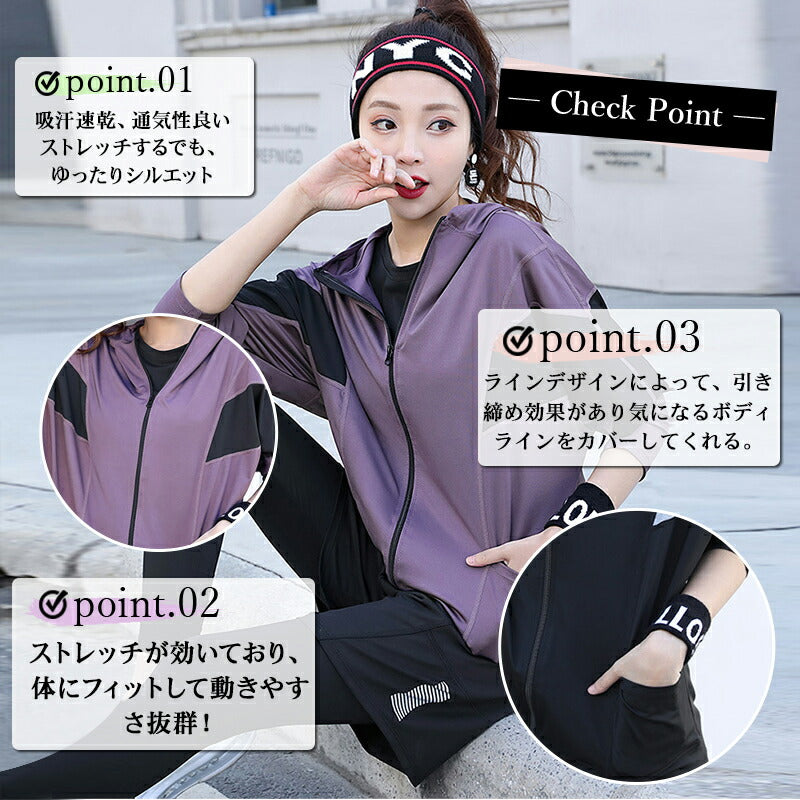 ランニングウェア レディース 5点セット トレーニングウェア 上下 スポーツウェア 女性 かわいい フィットネス 女性用 長袖 おしゃれ セットアップ ヨガウェ yogasuit-001