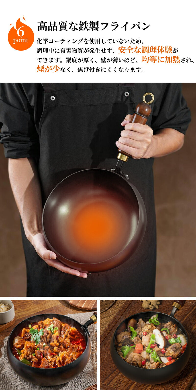 【レビュ特典あり】中華鍋 鉄 フライパン 焦げ付かない 鉄鍋 24cm 26cm 28cm ガス/IH対応 伝統鉄鍋 片手鉄鍋 焦げ付き防止 コーティングnabe01
