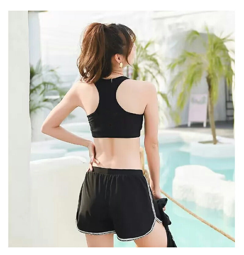 体型カバー 水着 レディース かわいい セパレート 水着 韓国 中学生 高校生 おしゃれ 体型カバー 水着 3点セット 20代 女の子 小胸 二の腕カバー 露出 wswimsuit-007
