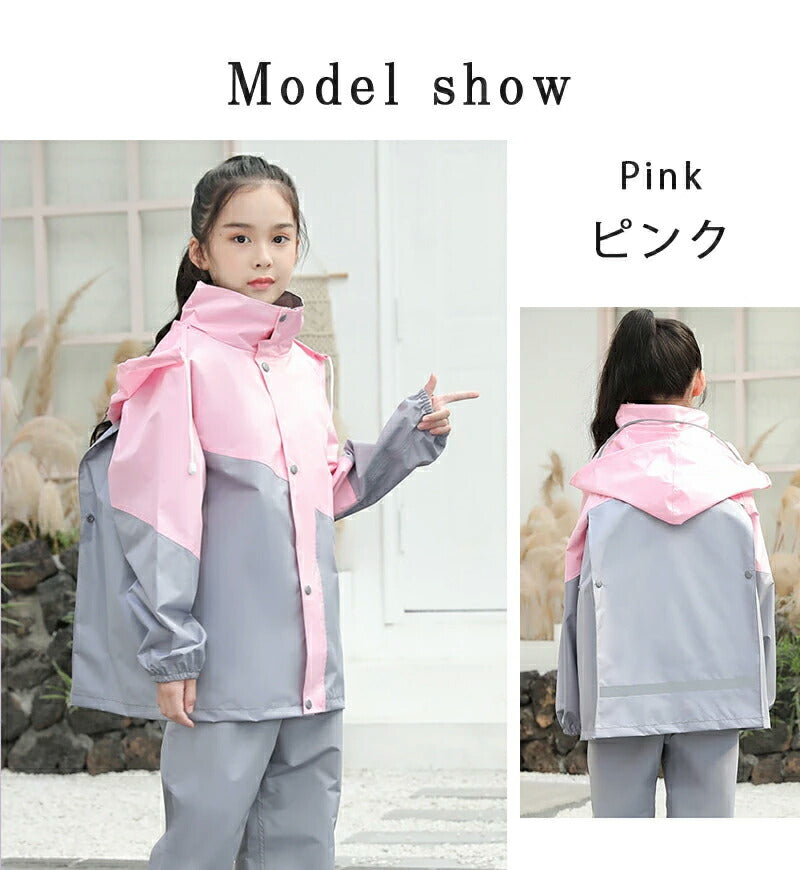 【即納】レインコート キッズ 上下 子供 小学生 ランドセル対応 レインパンツ 子供用 雨具 梅雨対策 収納袋付き 女の子 男の子 かわいい おしゃれ 防水 ジraincoat-001
