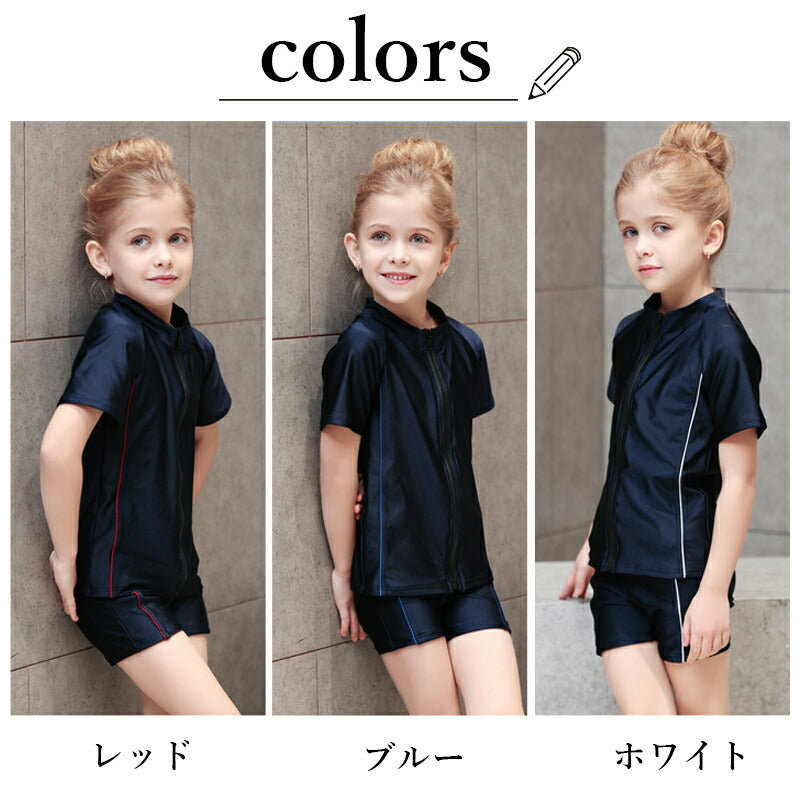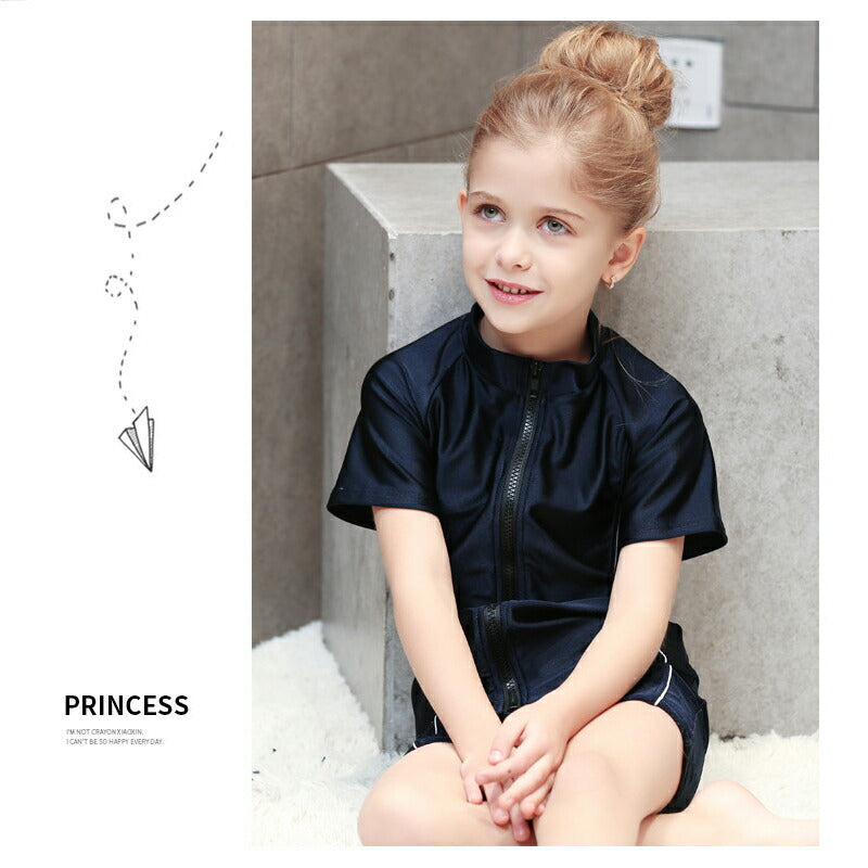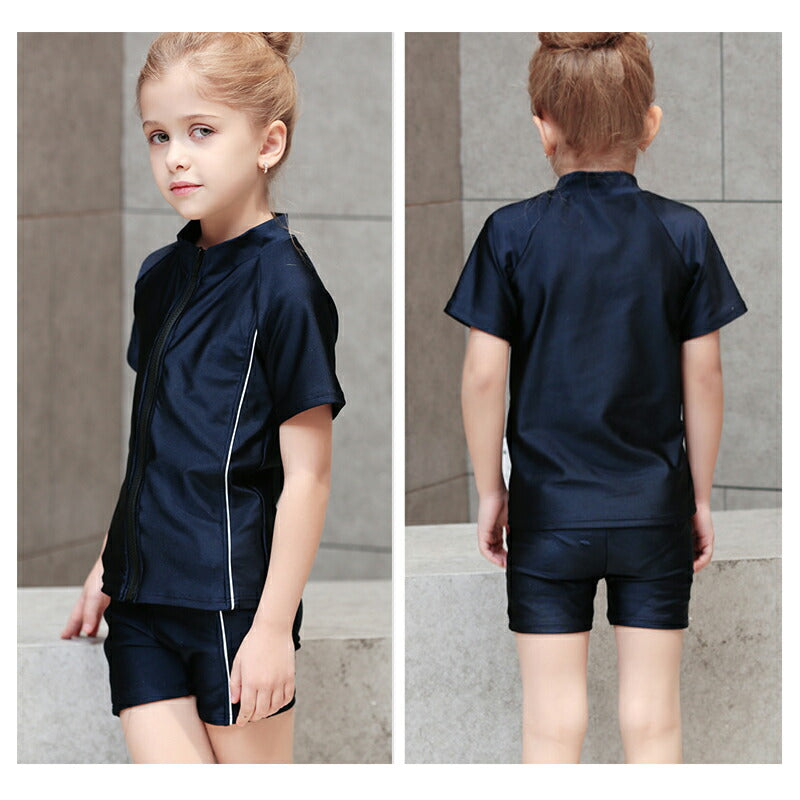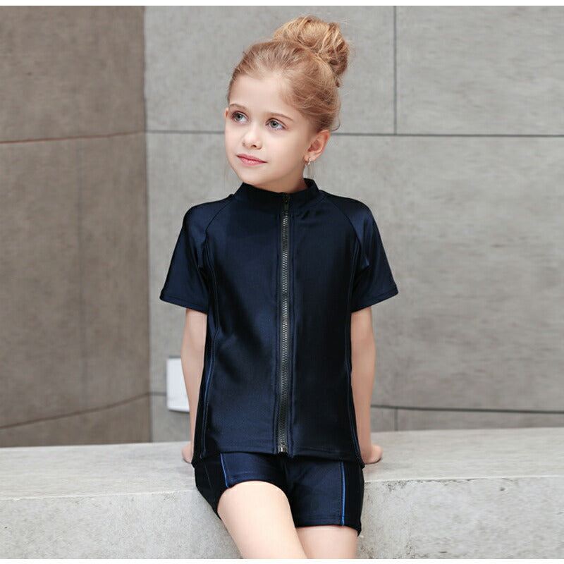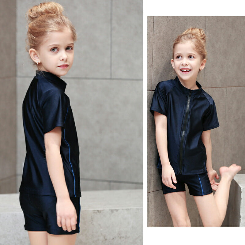子ども 水着 女児 半袖 前ジッパー セパレート スクール水着 ガールズ 女子 上下別 ハーフパンツ フィットネス 女の子 水着 ジュニア 1 swimsuit-040