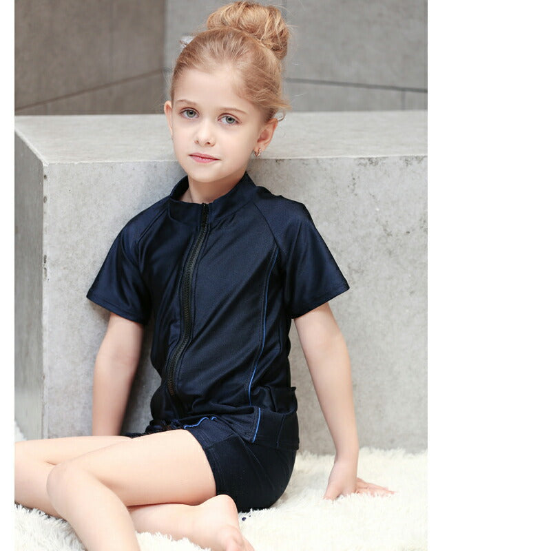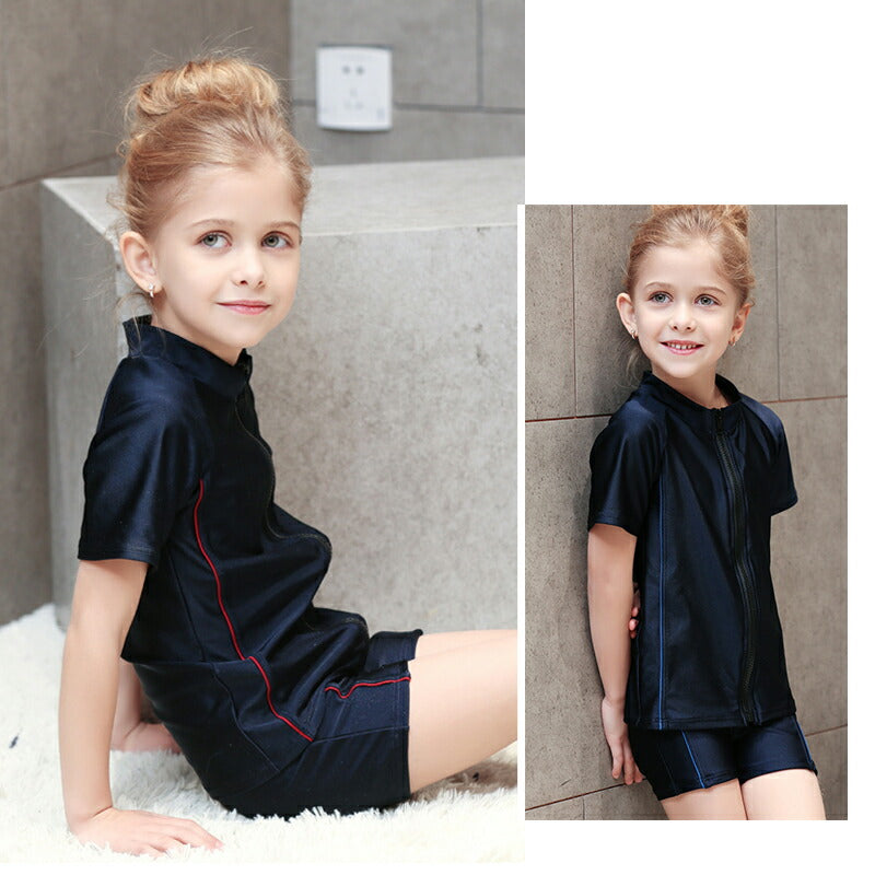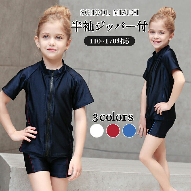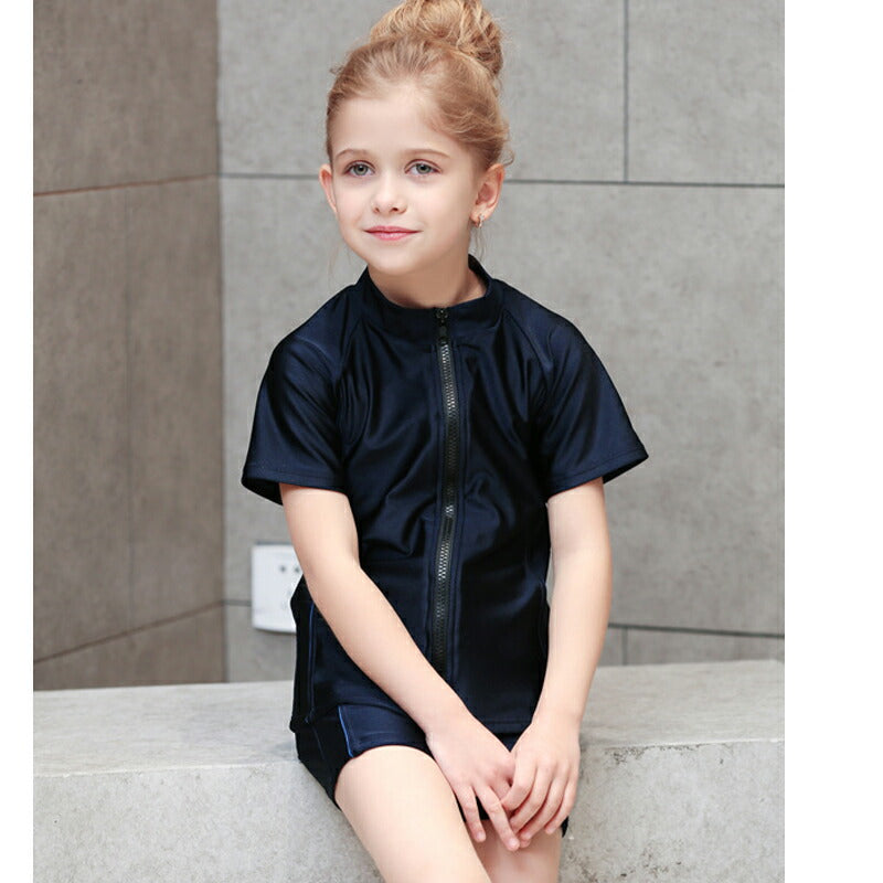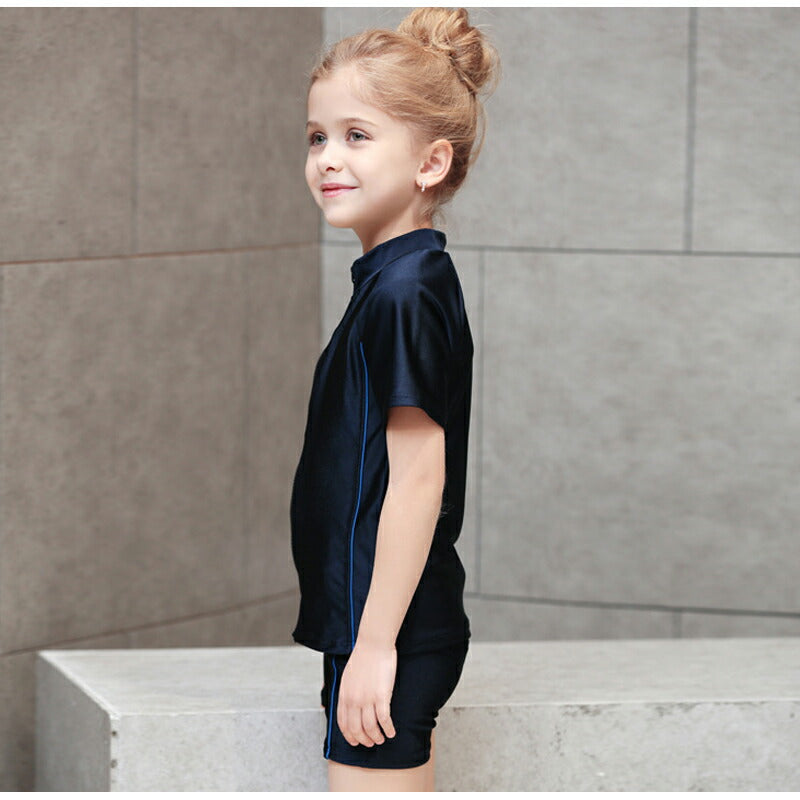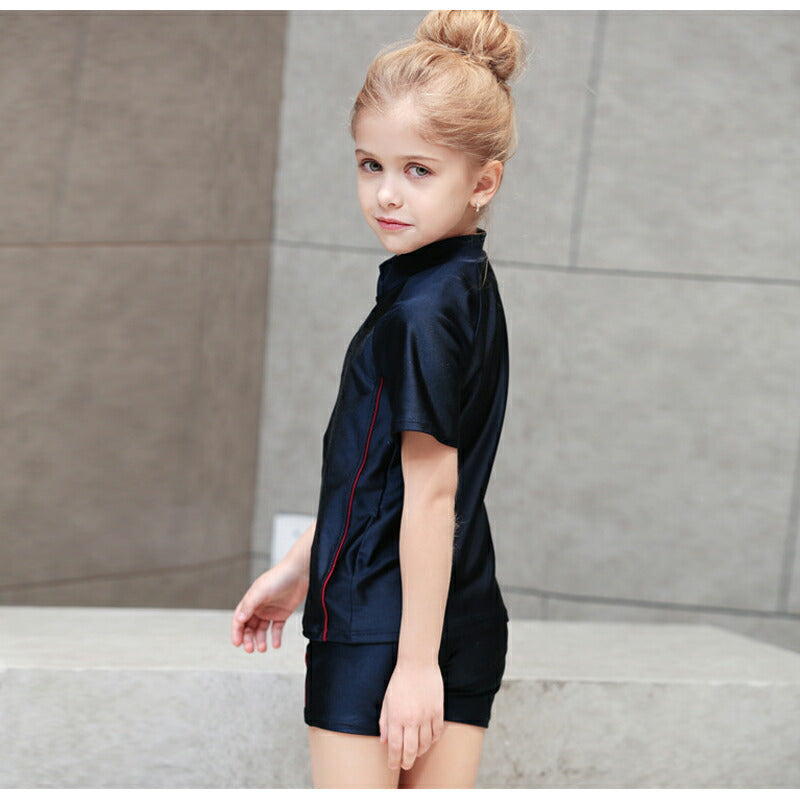 子ども 水着 女児 半袖 前ジッパー セパレート スクール水着 ガールズ 女子 上下別 ハーフパンツ フィットネス 女の子 水着 ジュニア 1 swimsuit-040