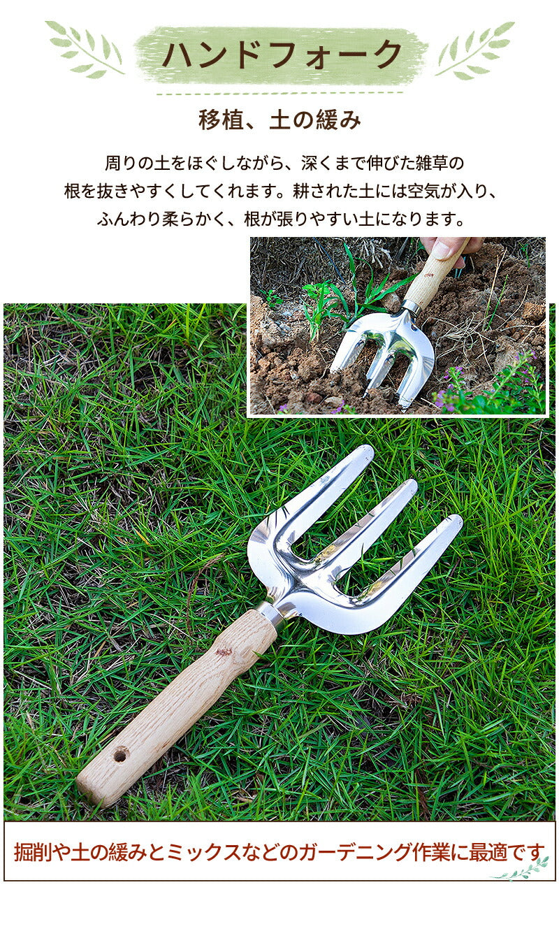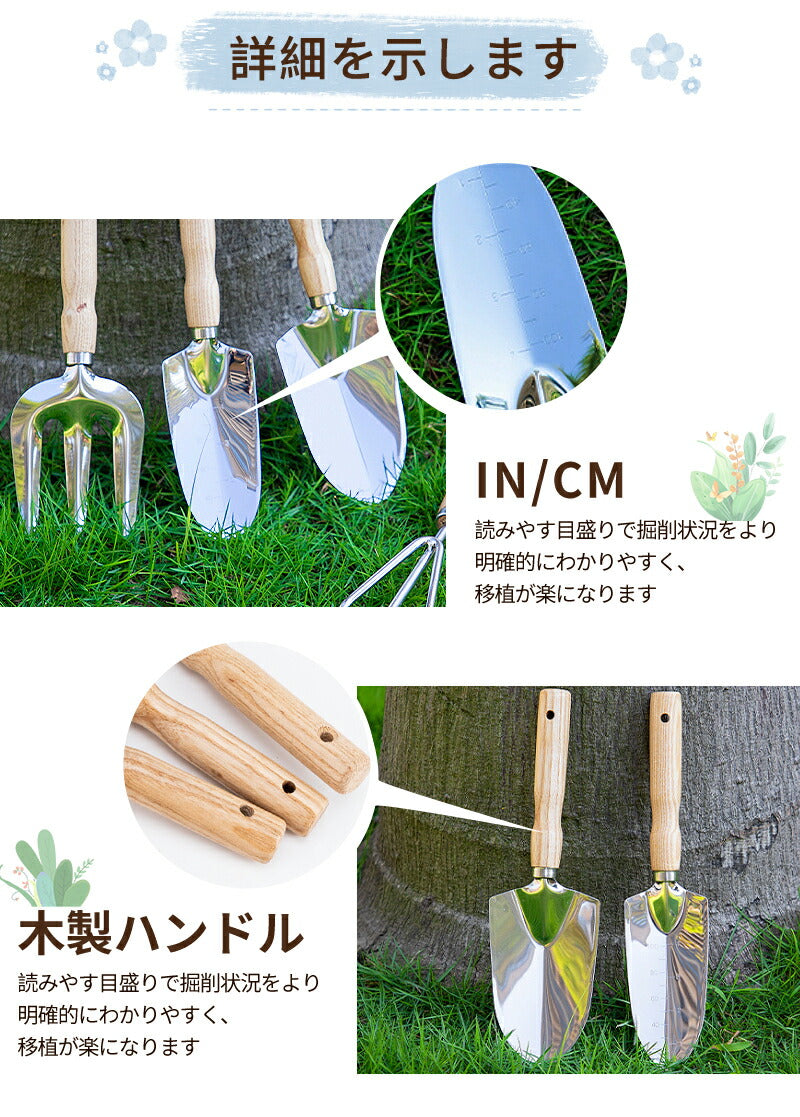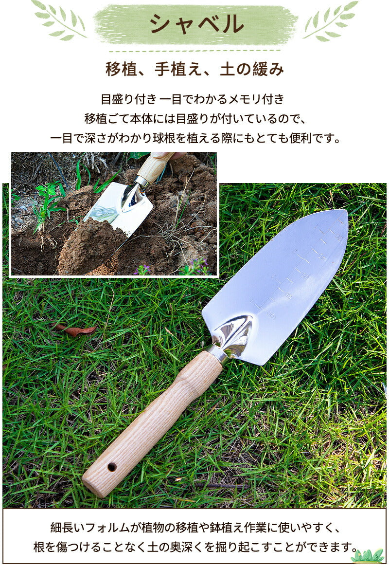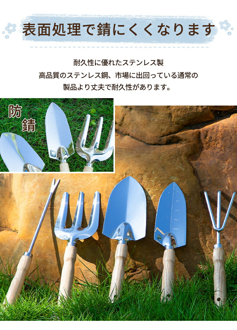 【母の日へ応援※500円OFFクーポン★5/7日 20:00迄】ガーデニングツール ステンレス製 園芸 スコップ 移植ごて セット ガーデンフォーク ソイルスコgarden-tool-01