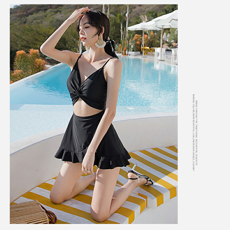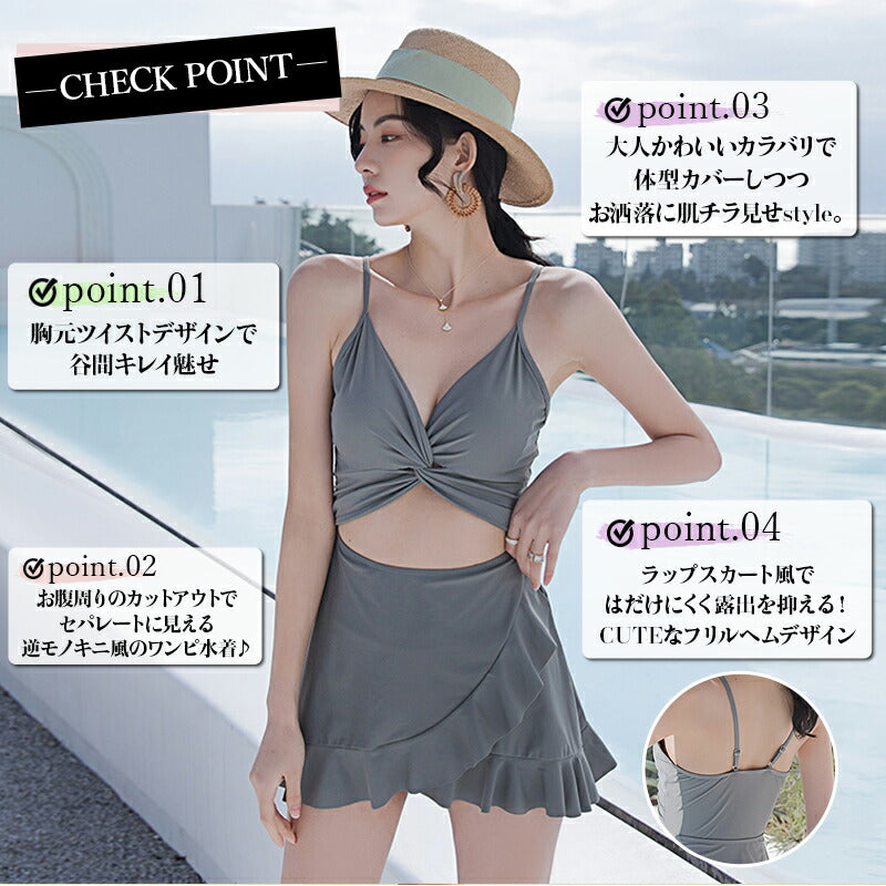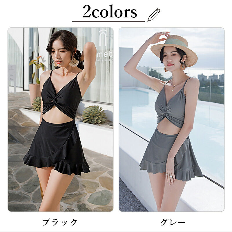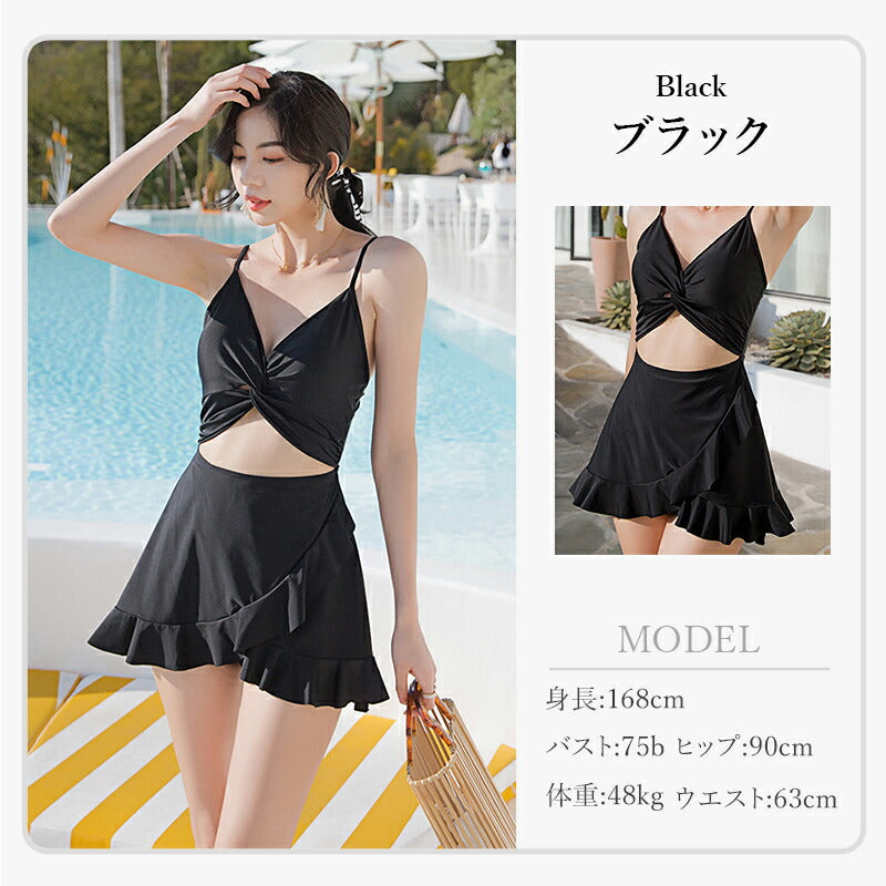 水着 水着 レディース ワンピース 体型カバー水着 20代 30代 40代 ママ水着 オトナ女子 露出控えめ 黒 白 セクシー Vネック キャミソール オールイ swimsuit-030