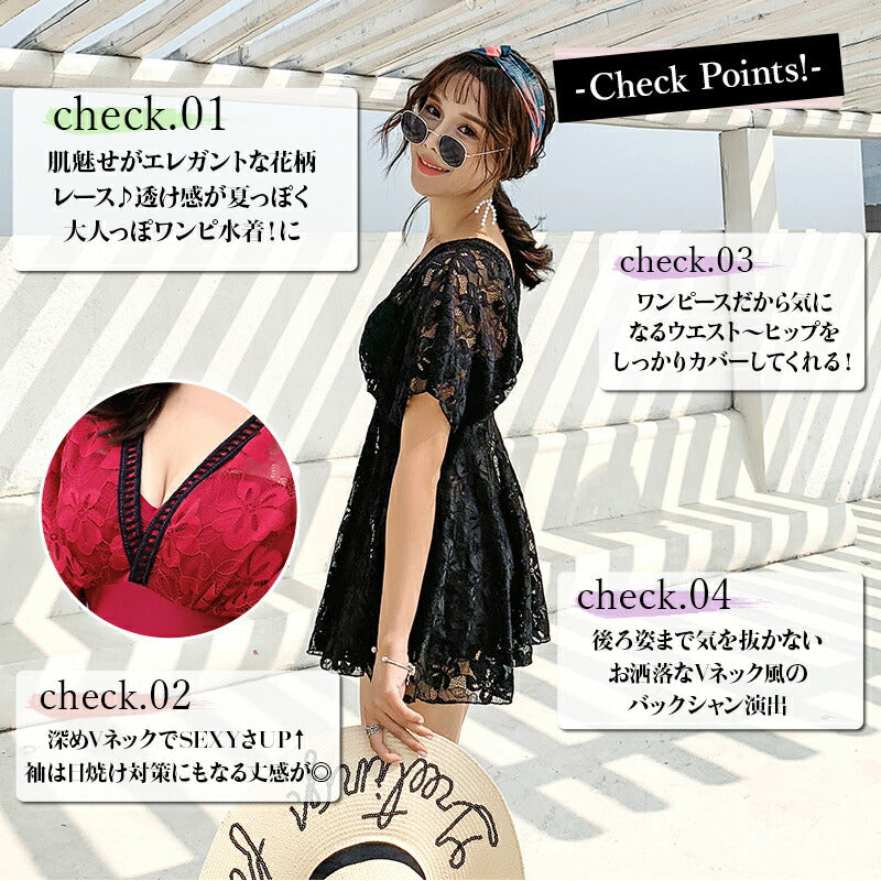 水着 水着 ワンピース レディース 体型カバー水着 大きいサイズ 4L 5L 6L 半袖 ぽっちゃり 20代 30代 40代 50代 ママ水着 ミセス オトナ女 swimsuit-033