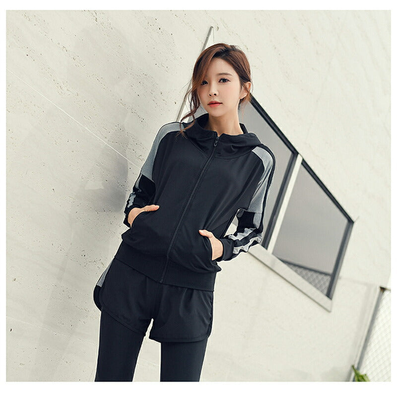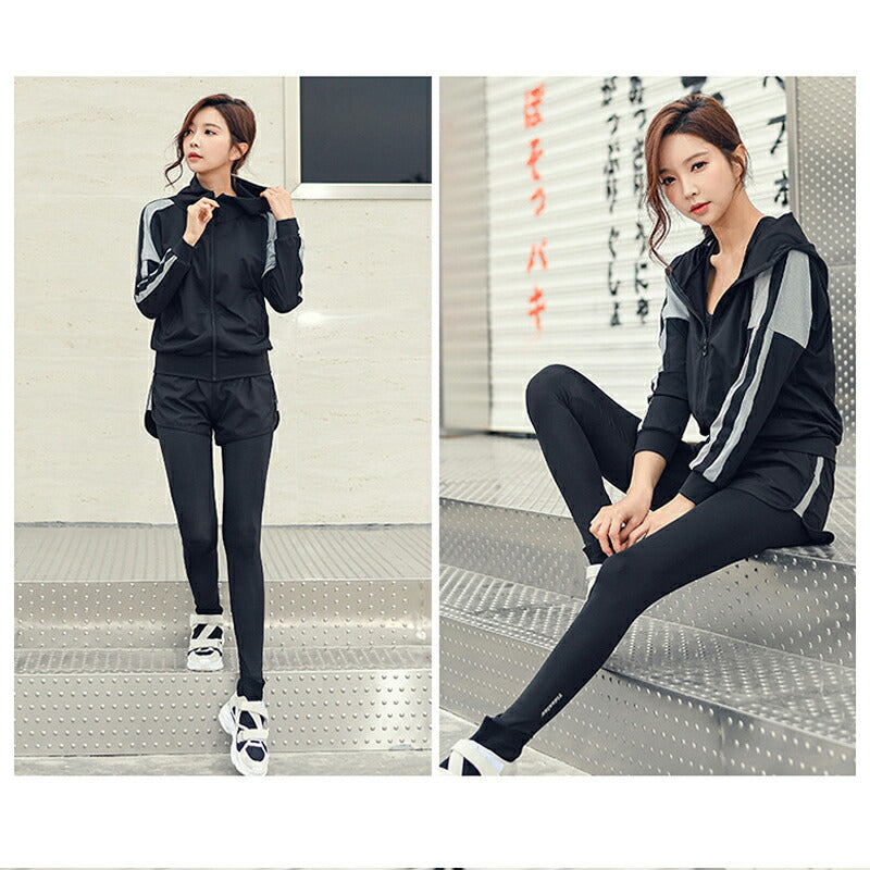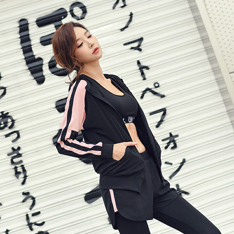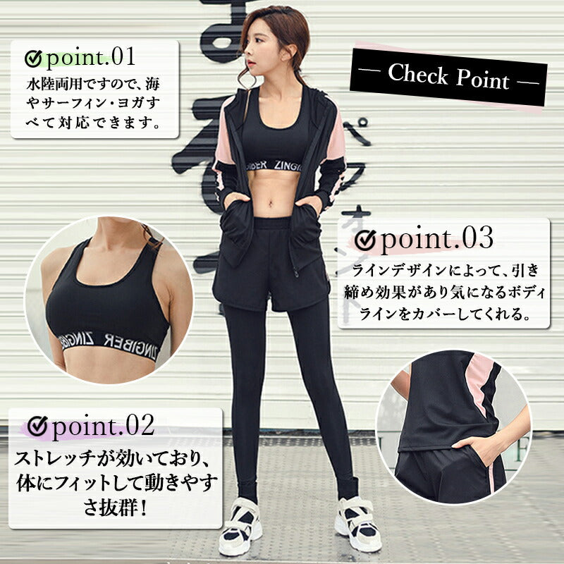 水着 水陸両用 フィットネス 5点セット レディース 体型カバー ヨガ ラッシュガード 長袖 上下セット スポブラ レギンス ショートパンツ Tシャツ ジム ス swimsuit-031
