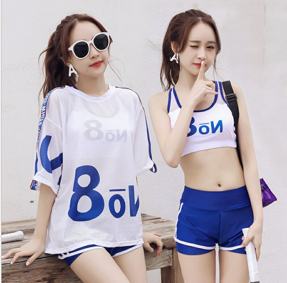水着 10代 レディース 中学生 高校生 20代 学生 半袖 uv ママ水着 体型カバー 3点セット ビキニ 少女 小胸にもぴったり 韓国 おしゃれ yy1005