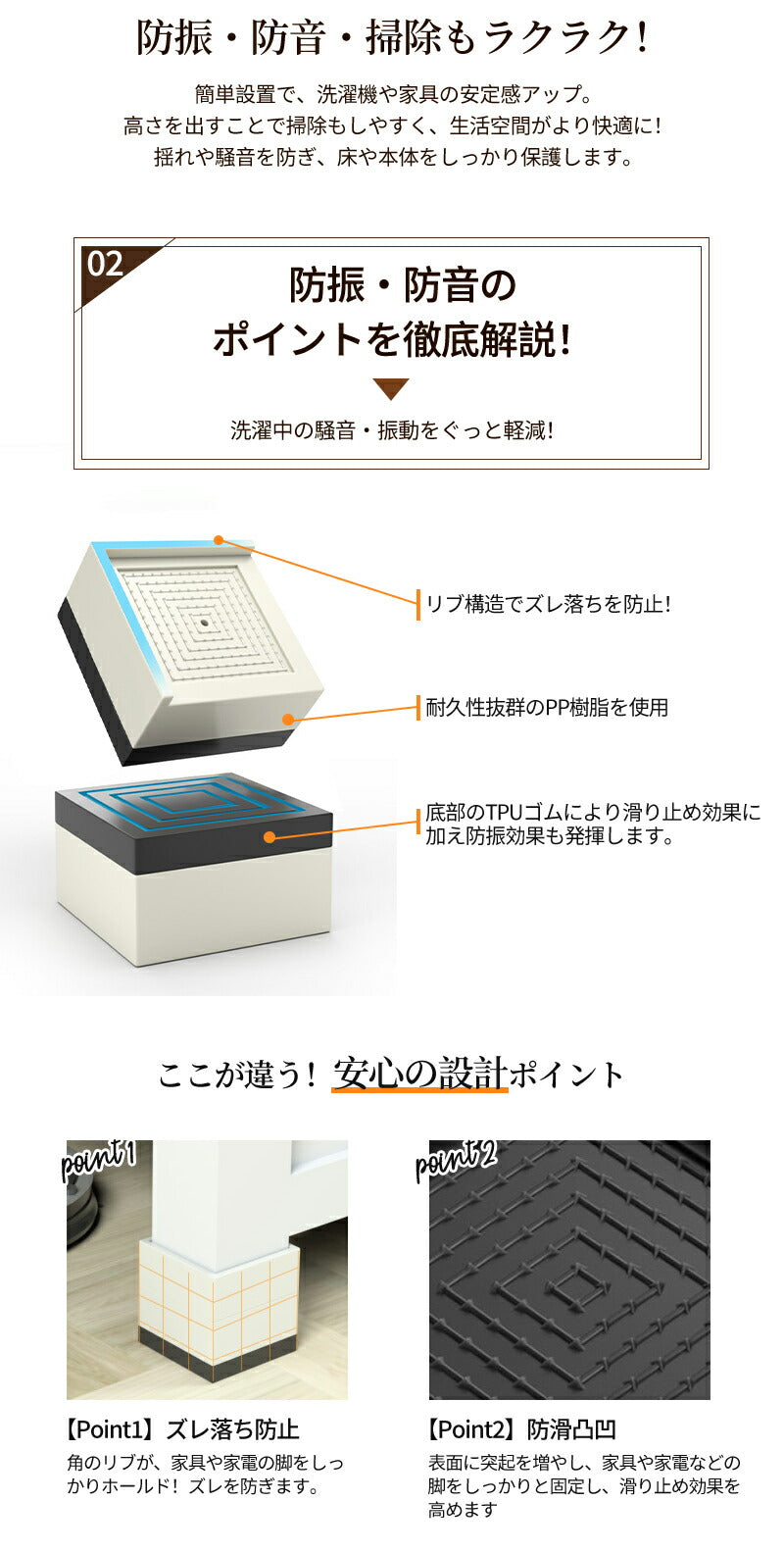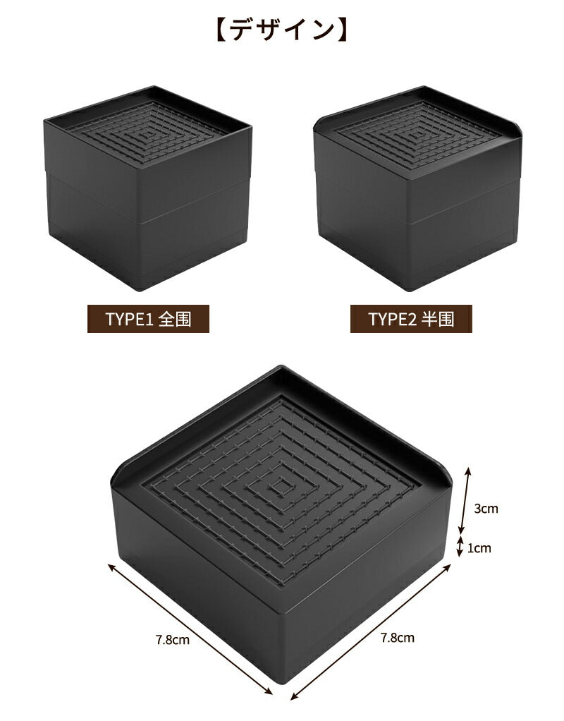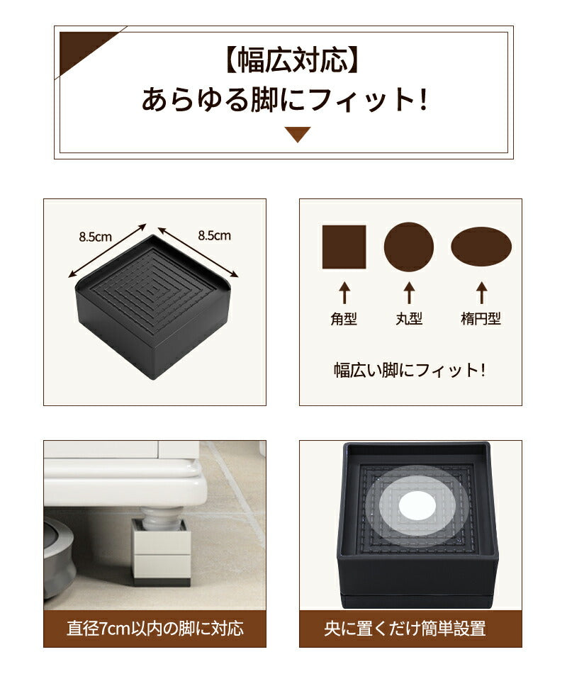 洗濯機 かさ上げ台 置き台 【4個入り】防振 防振ゴム 冷蔵庫 洗濯機置き台 高さ調整 底上げ 乾燥機 ドラム式 かさ上げ 足 防水 机 こたつ ベッド 洗濯機mount-023