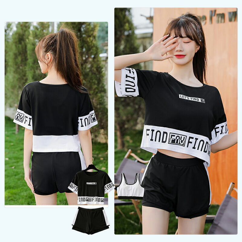 【送料無料即納】水着 中学生 水着 体型カバー 中学生 高校生 3点セット スポーティー 学生 韓国 プール 女の子 10代 20代 30代 海 可愛い おしゃ yy1001