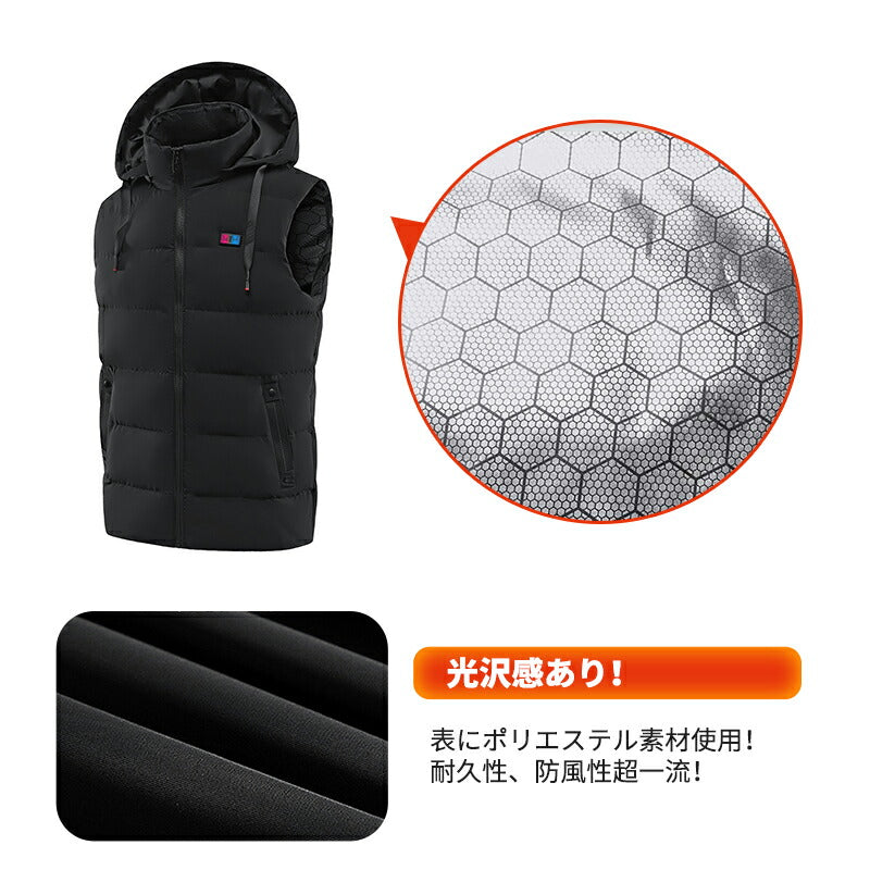 【送料無料~】電熱ベスト 防寒着 速暖 日本製ヒーター 中綿 バッテリー付き USB給電 洗える 三段階調温 軽量 冷え性 メンズ レーディス 20000mA copysku-112