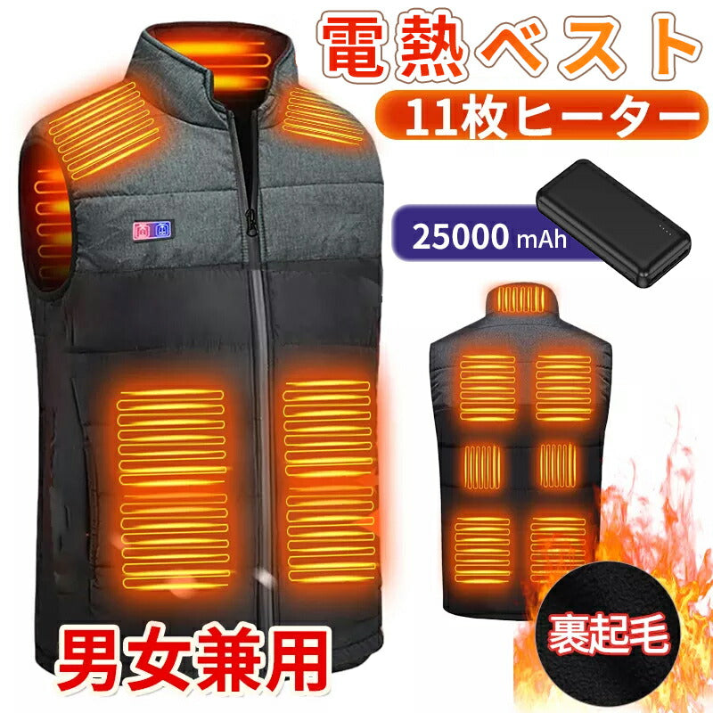電熱ベスト 裏起毛 バッテリー付き 速暖 日本製ヒーター 中綿 USB給電 洗える 三段階調温 軽量 冷え性 メンズ レーディス PSE 11エリア発熱 電熱ウ copysku-99