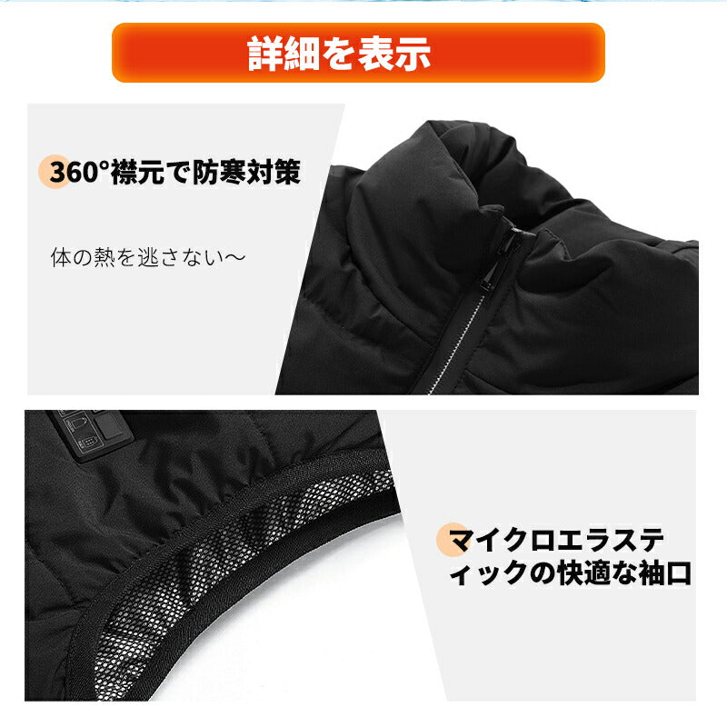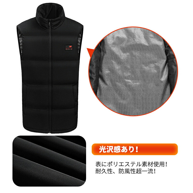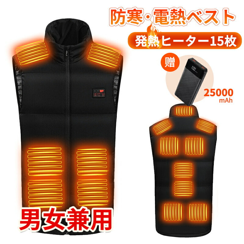 電熱ベスト 速暖 防寒着 日本製ヒーター 中綿 USB給電 洗える 三段階調温 軽量 冷え性 メンズ レーディス 25000mAh バッテリー付き 電熱ウェア besuto-18pawa1
