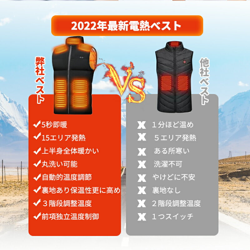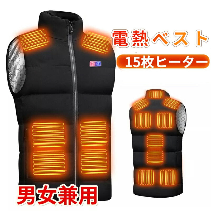 電熱ベスト 15箇所加熱 ヒーターベスト 加熱ベスト 前後独立 防寒 モバイルバッテリ別売り USB給電 薄型 洗濯可能 インナー 三段階調節 メンズ レーディ besuto-08