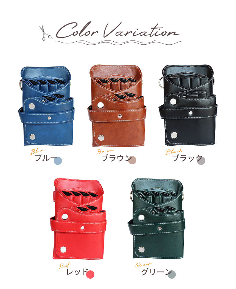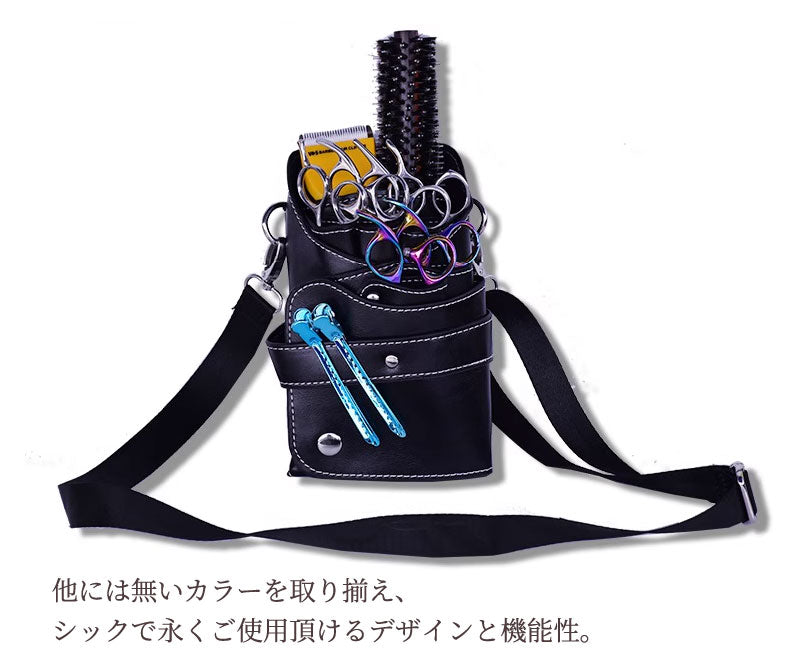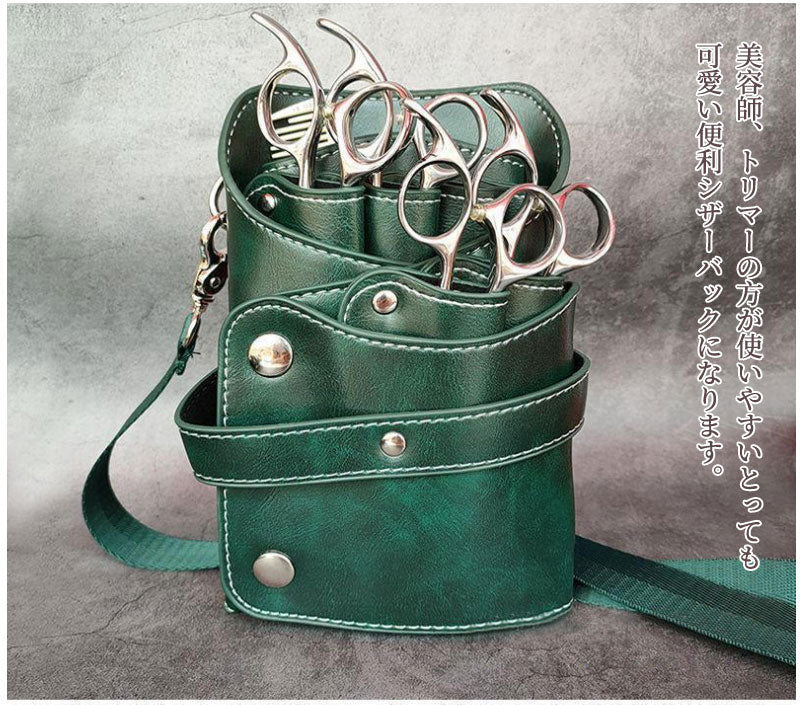 【18日限定 150円OFFクーポン利用!】シザーケース6丁収納 収納 シザーバッグ トリマー 美容師 ヴィンテージ ビンテージ ウエストポーチ PUレザー 腰scissors-case-03