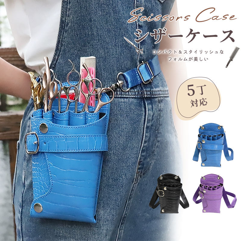 【18日-21日限定※10%OFF】シザーケース5丁収納 収納 シザーバッグ トリマー 美容師 ヴィンテージ ビンテージ ウエストポーチ PUレザー 腰掛け フscissors-case-02