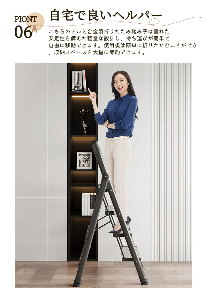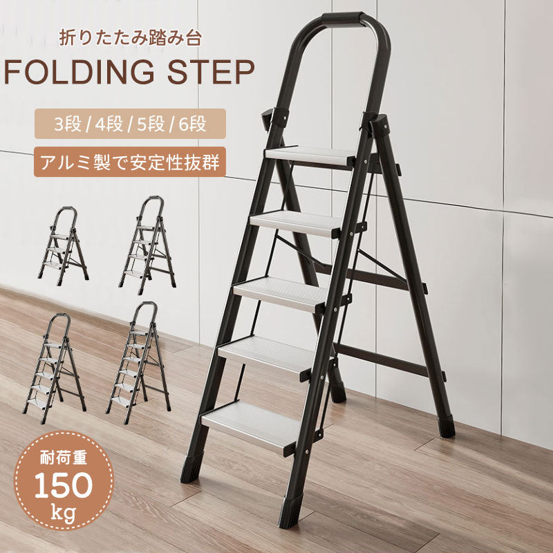 【18日-21日限定※10%OFF】踏み台 脚立 折りたたみ おしゃれ アルミ製 軽量 3段 4段 5段 6段 ステップ台 折りたたみステップ ホワイト ブラfumidai-1701