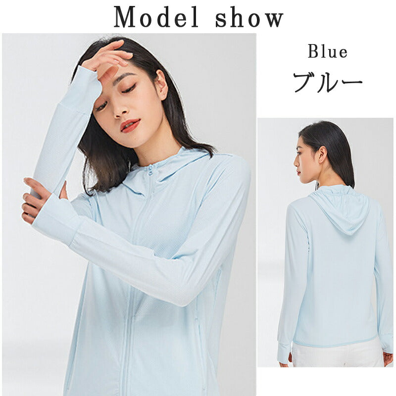 uv パーカー uvカット パーカー アウトドアラッシュガード プルオーバー レディース 薄手 ひんやり 長袖 フード付 ジップアップ 体型カバー UVカットパ uvpaka-005